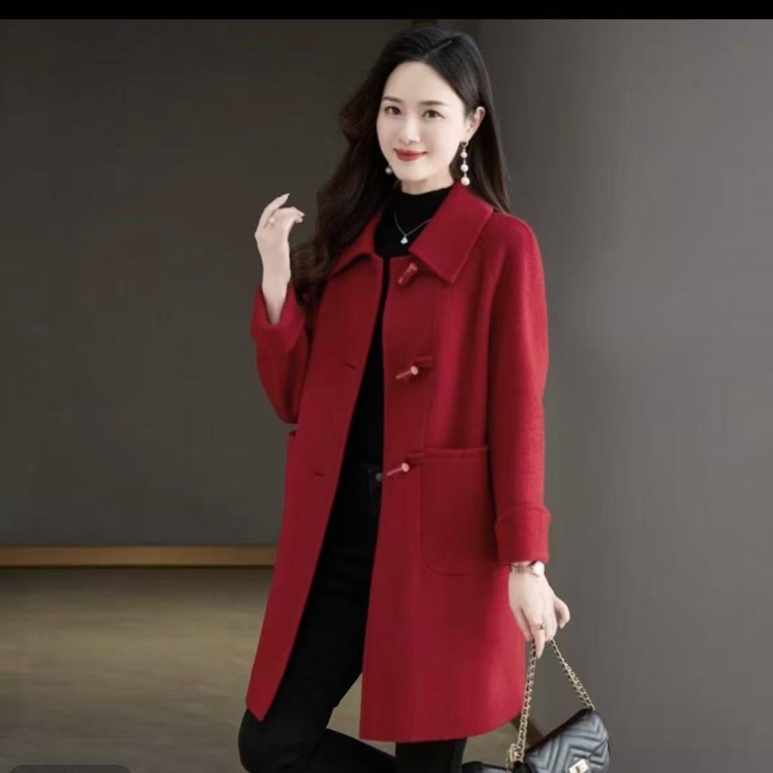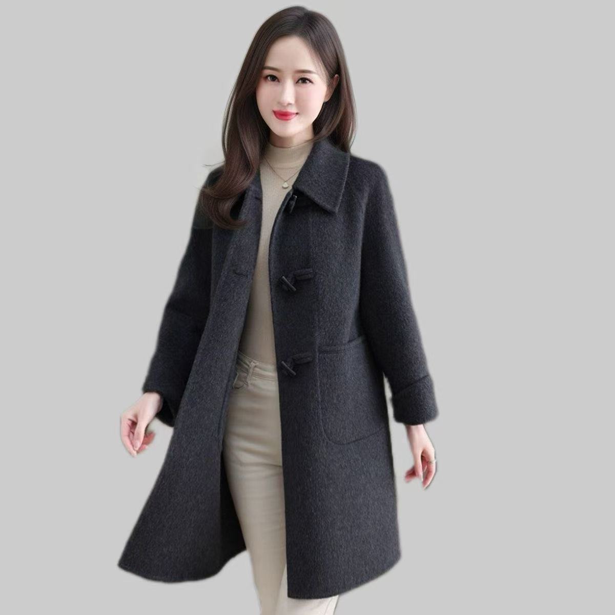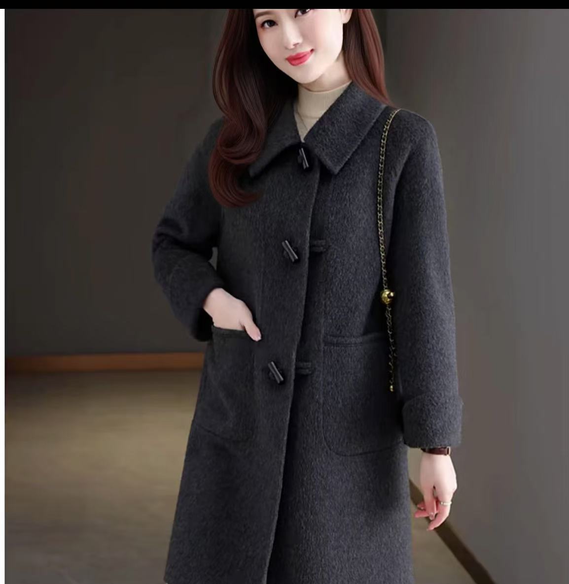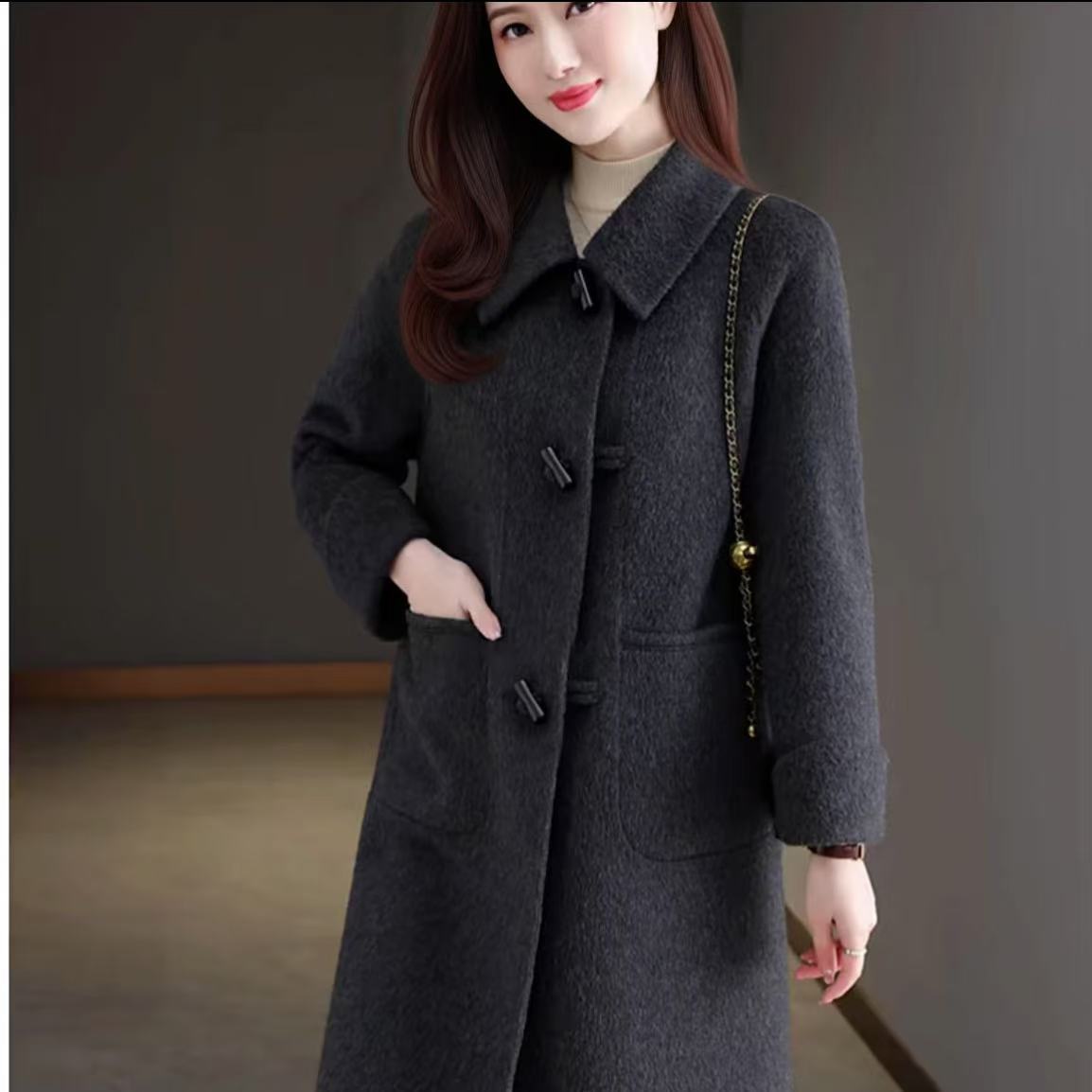 双面大衣毛呢小个子中长款2025新款秋冬外套宽松时尚羊毛灰