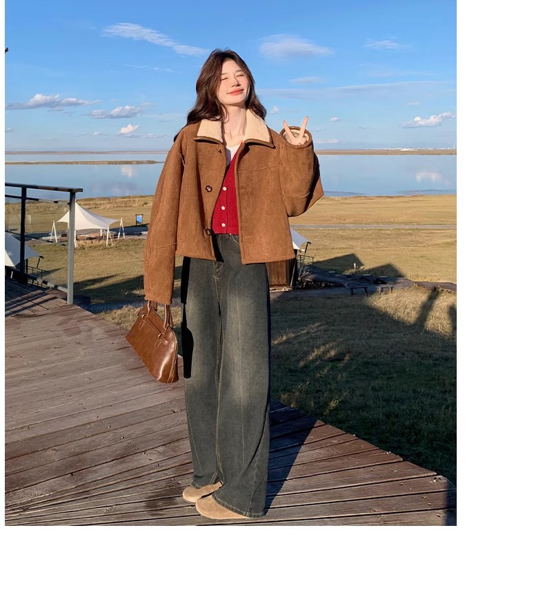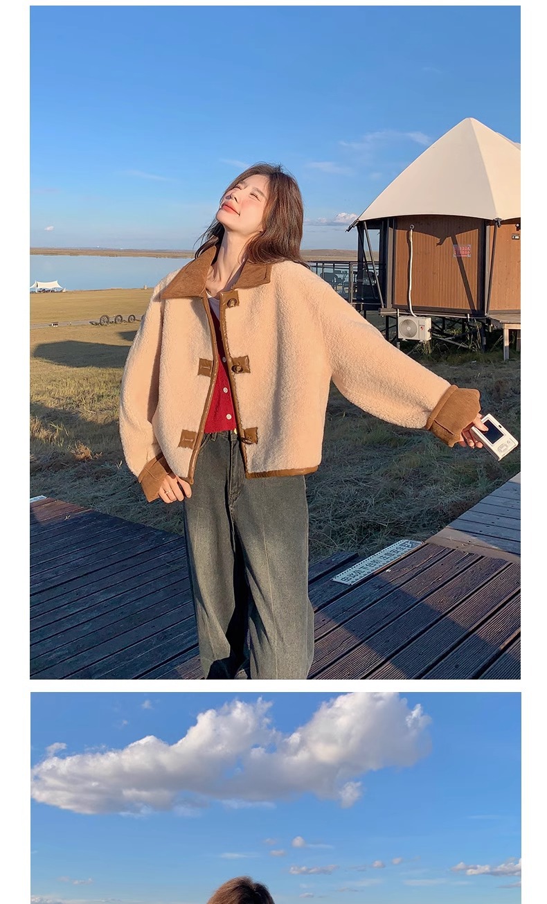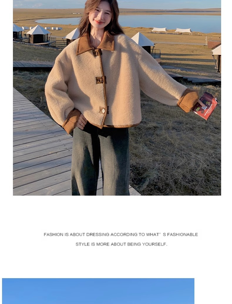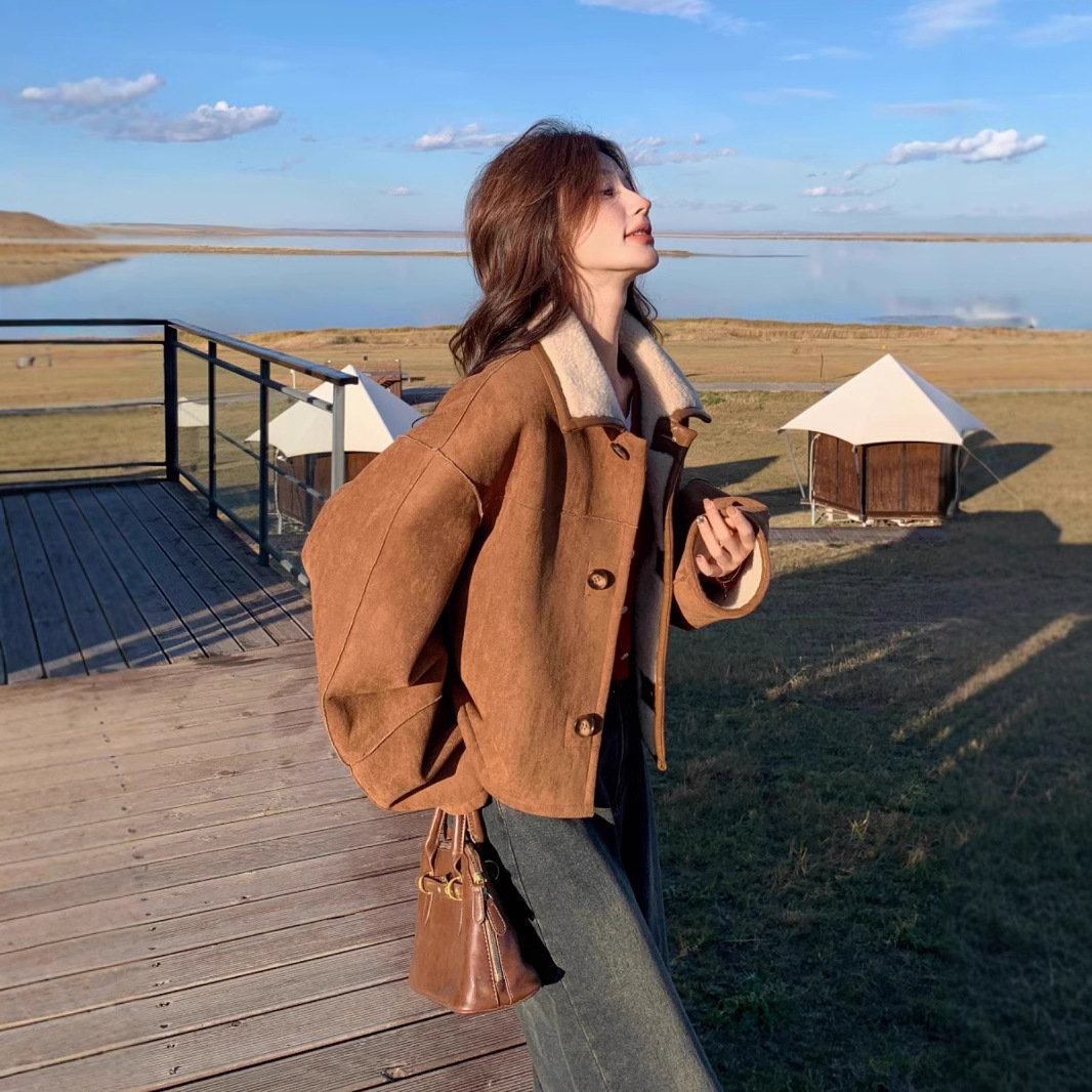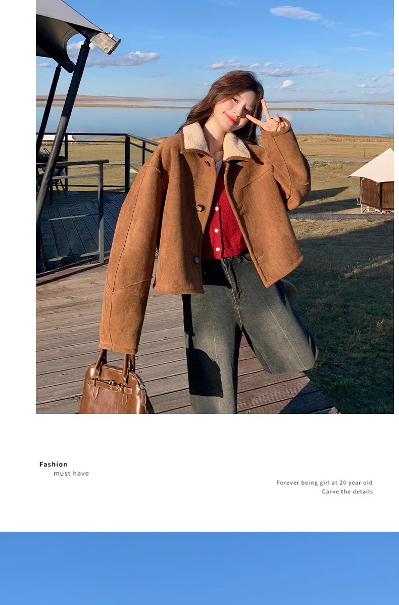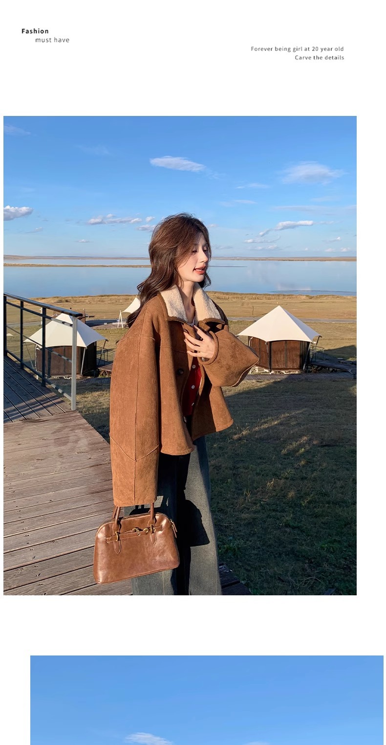 仿羊羔毛外套女小个子时尚2024秋冬新款气质加厚短款仿麂皮绒上衣