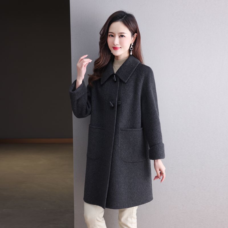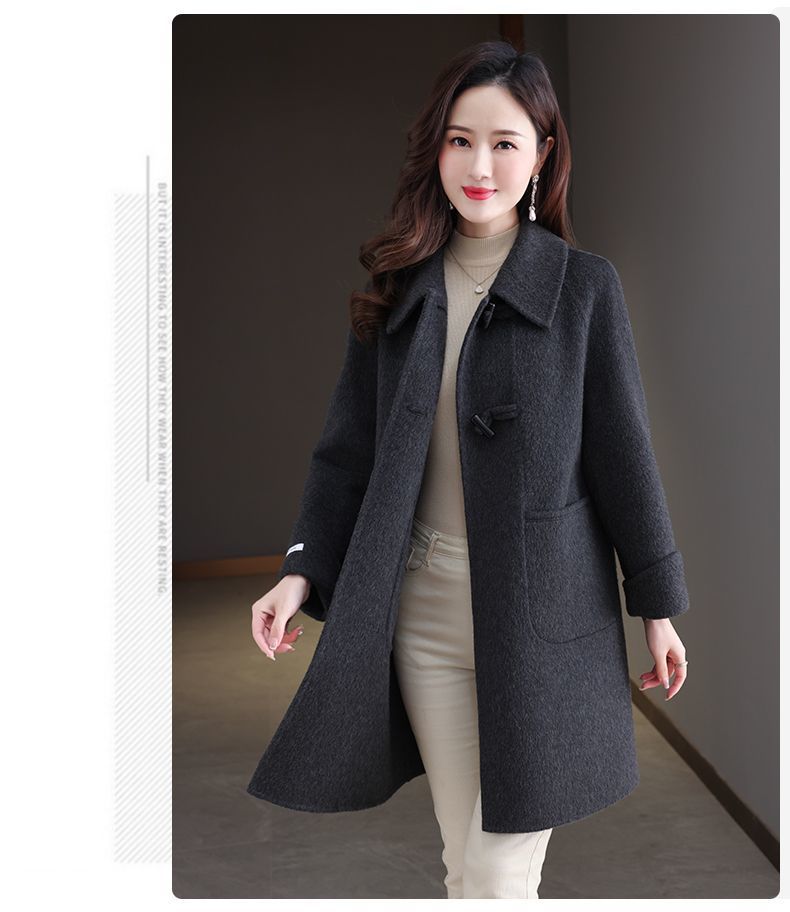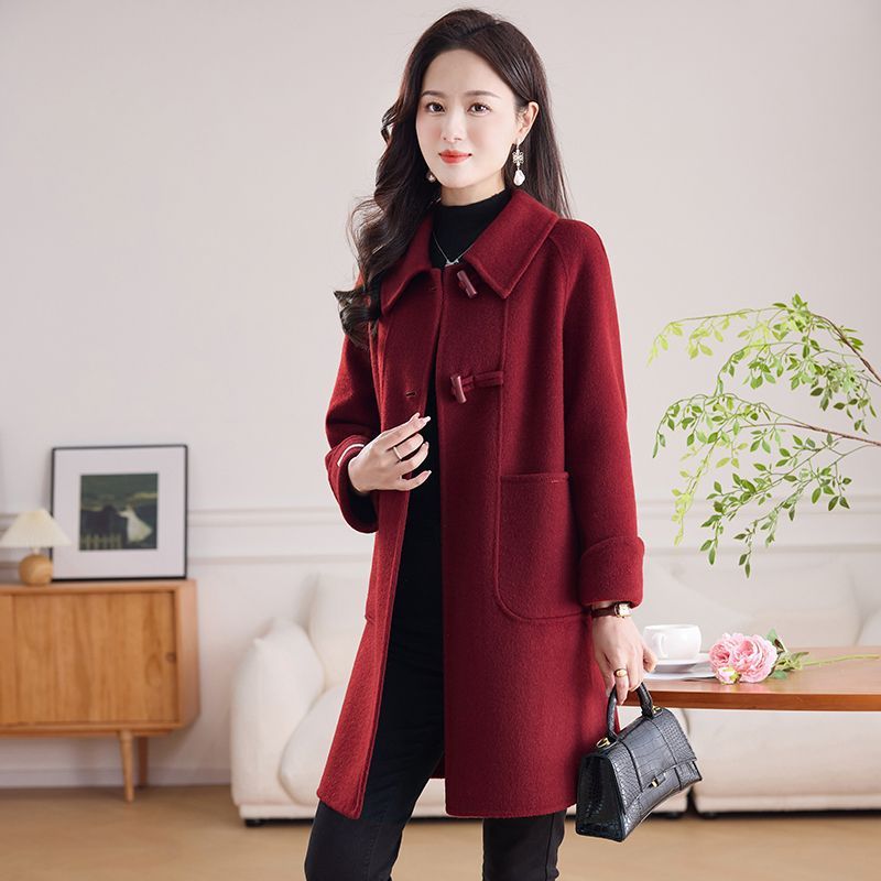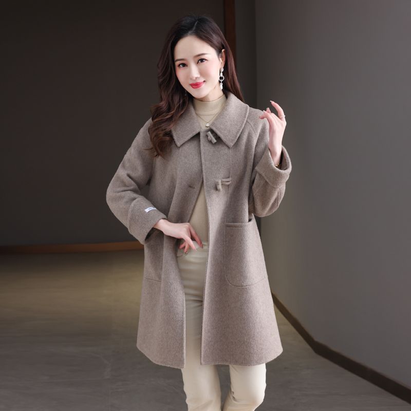 2025新款秋冬双面呢大衣女中长款气质显瘦羊毛呢子娃娃领毛呢外套