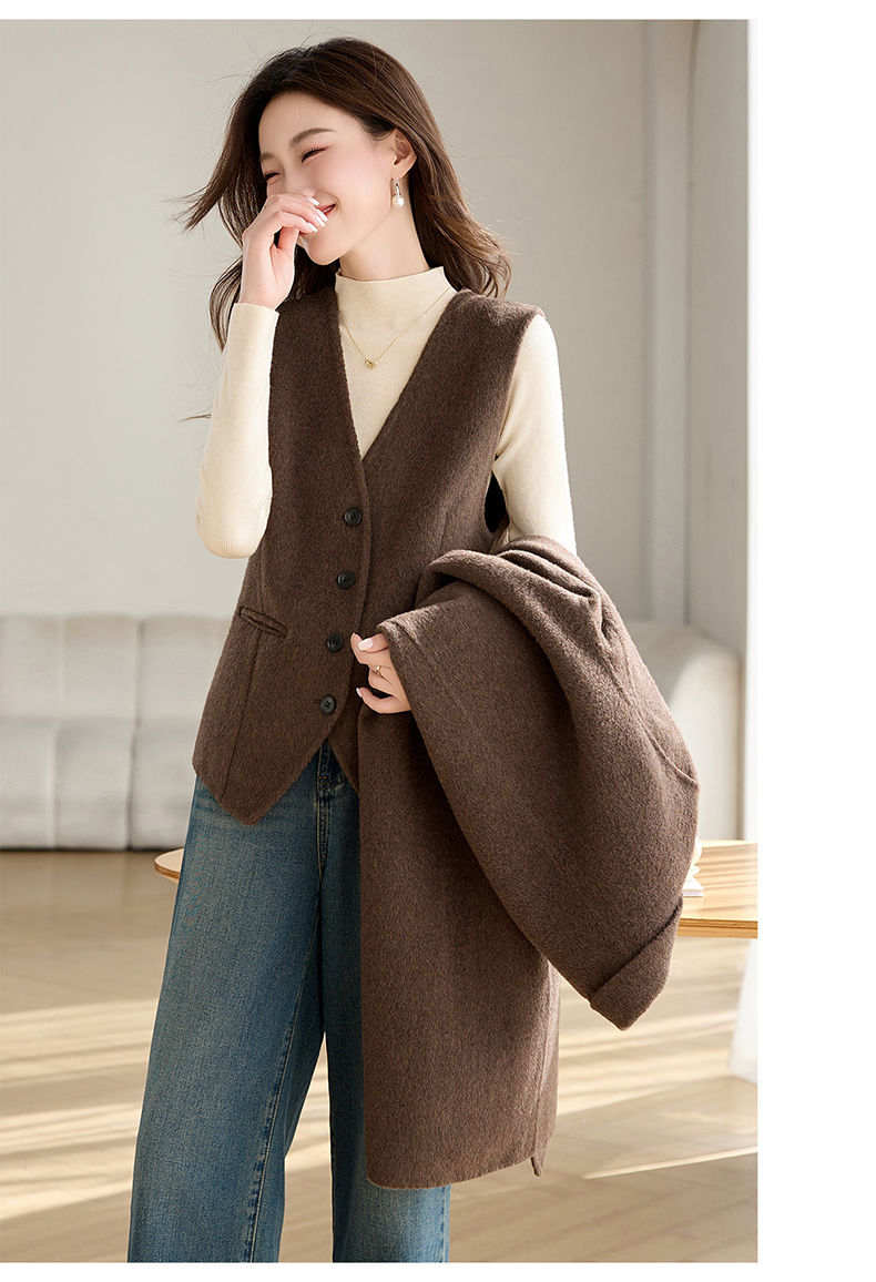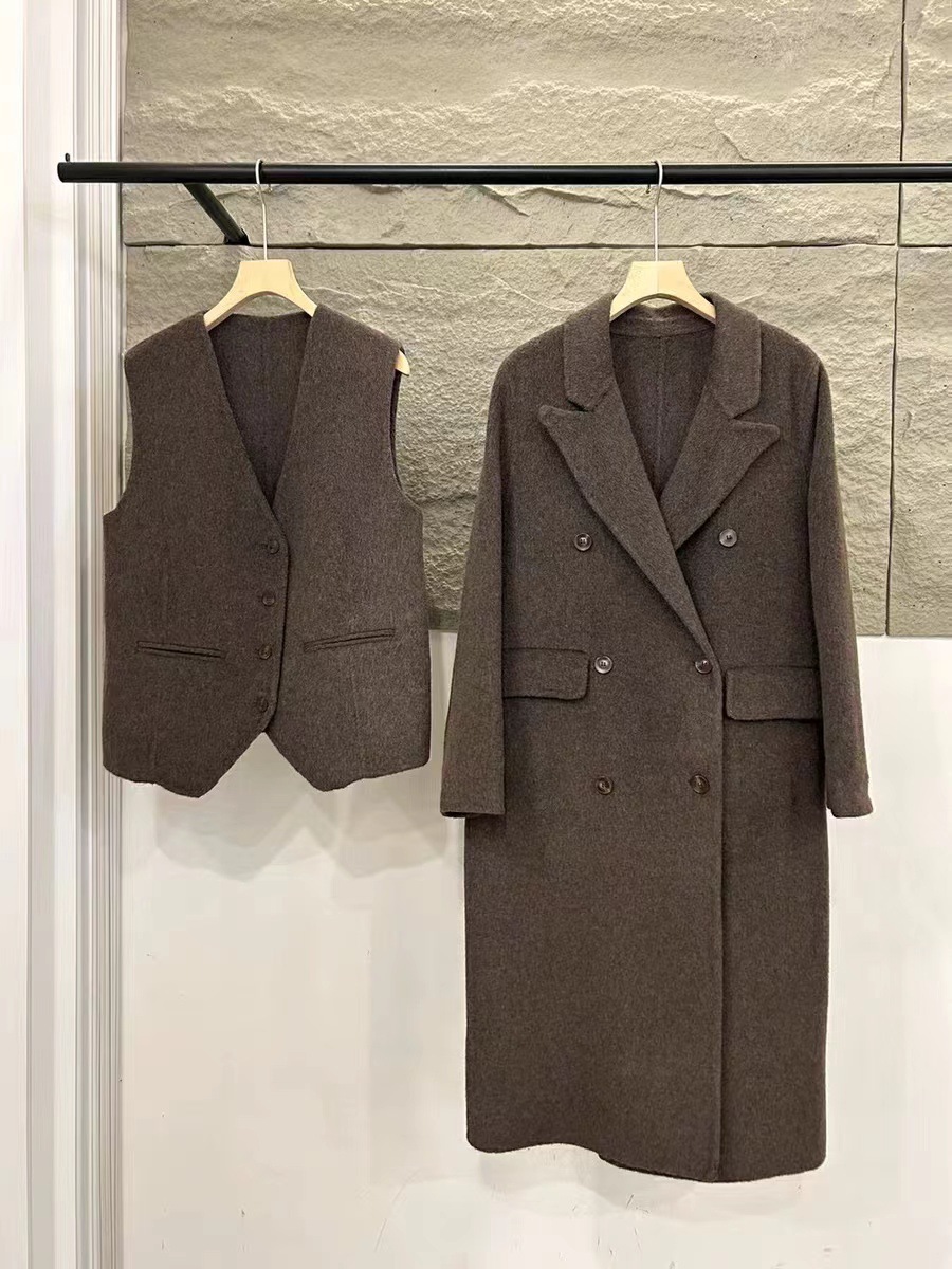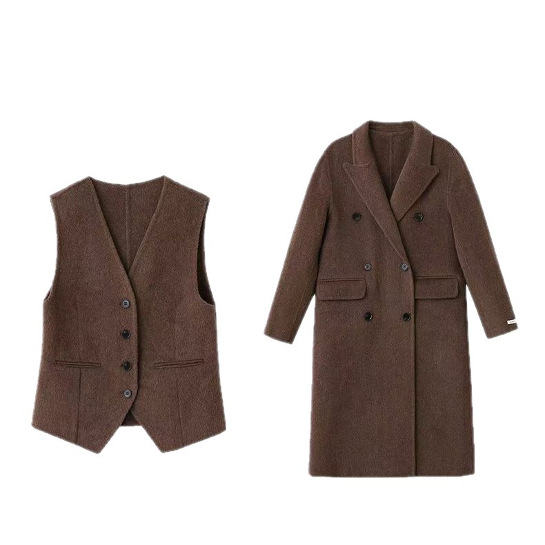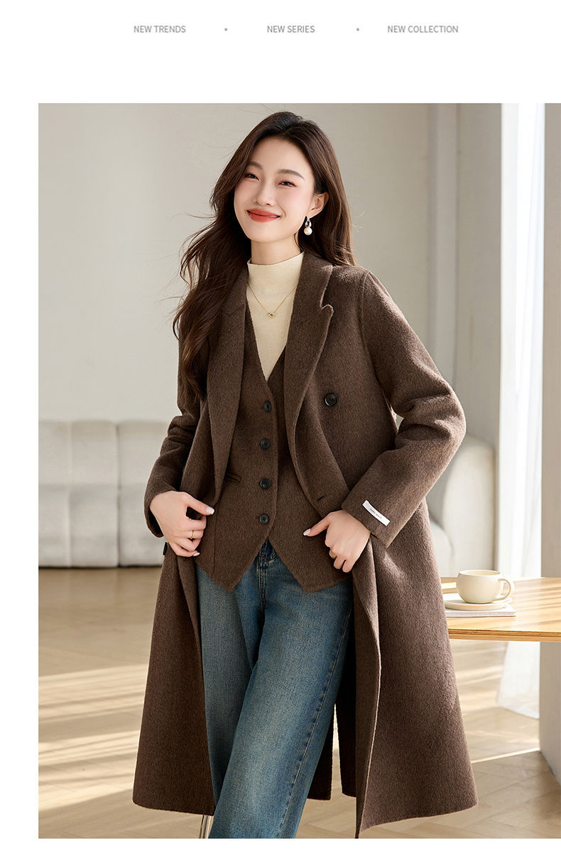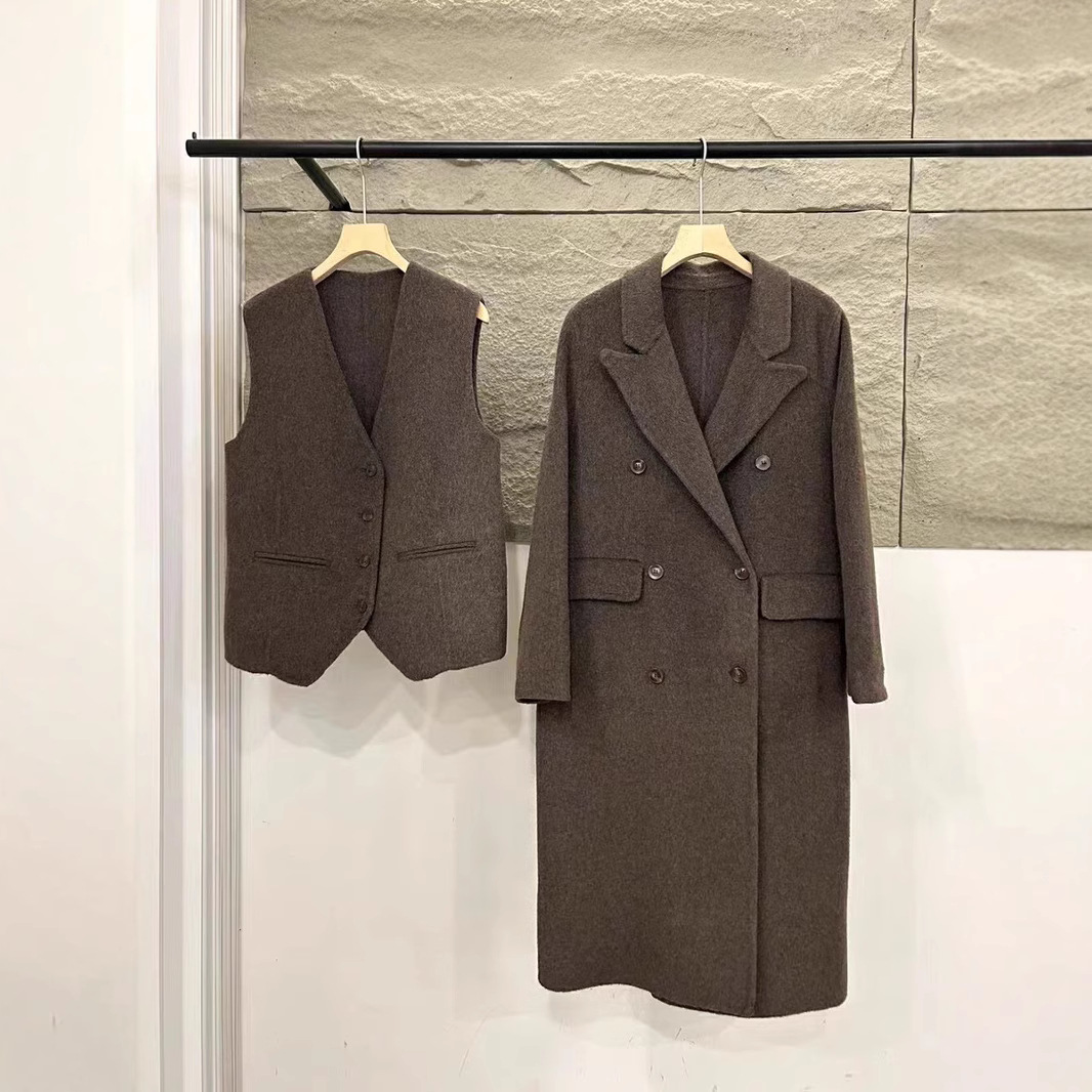 2025新款双面羊毛大衣加长款高级感韩系减龄气质双面呢马甲两件套