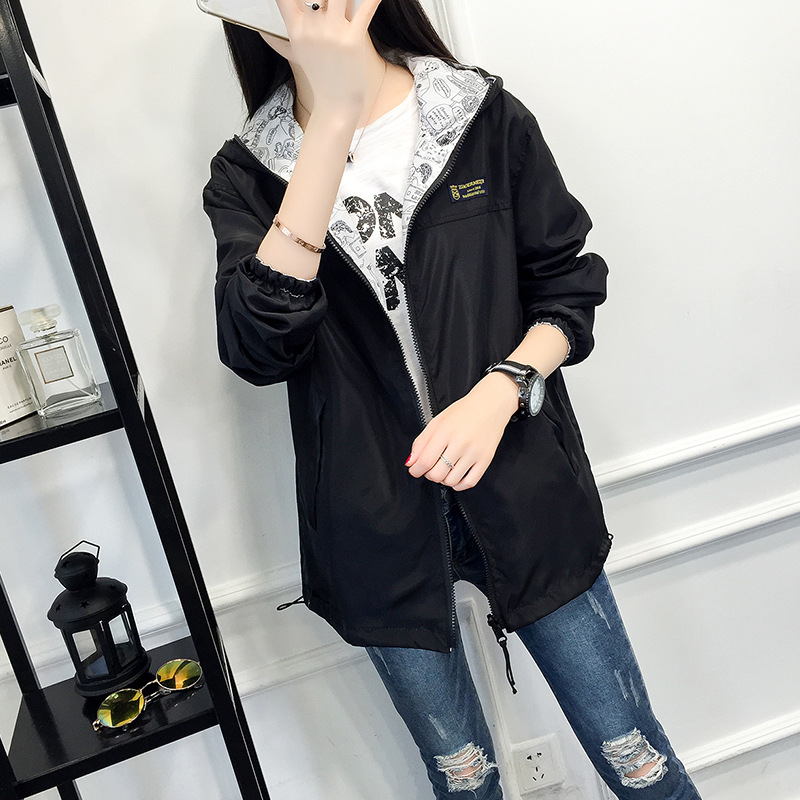 厂家现货2025春秋新款韩版两面穿风衣女连帽宽松短款外套女学院风