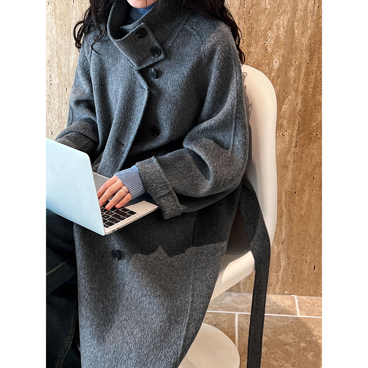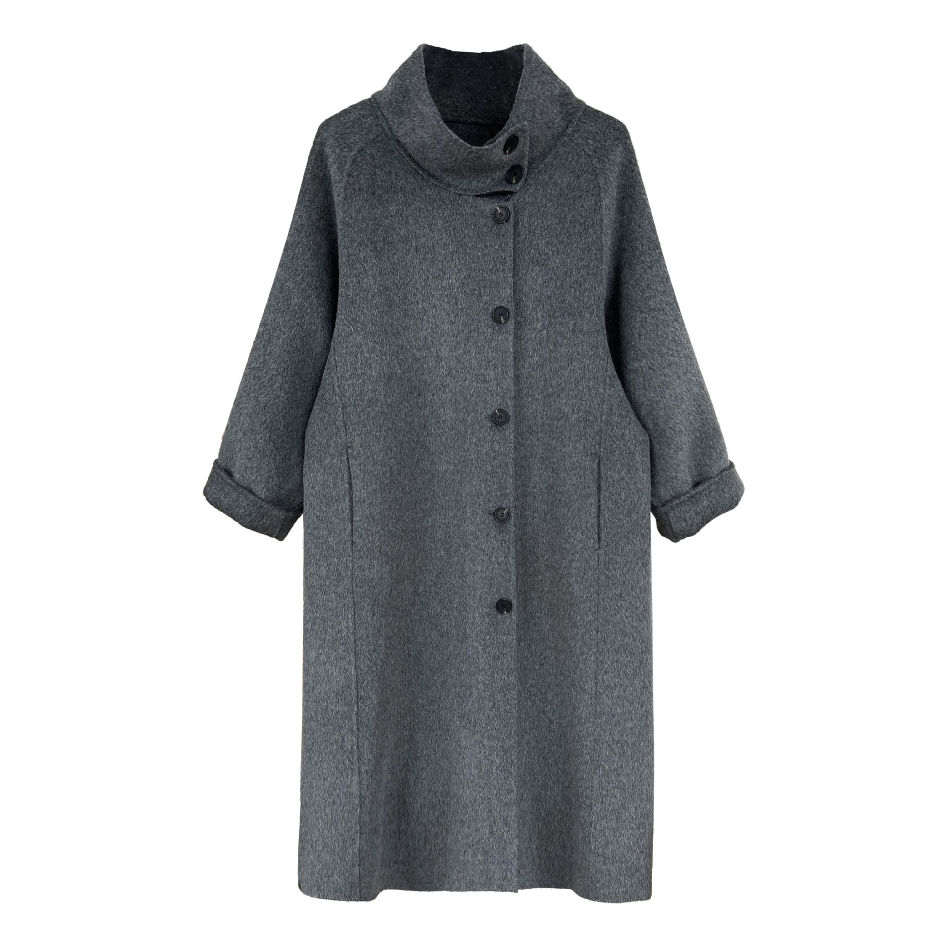 鹿西 韩国高端立领双面呢羊毛大衣女中长款2025冬季毛呢外套5053