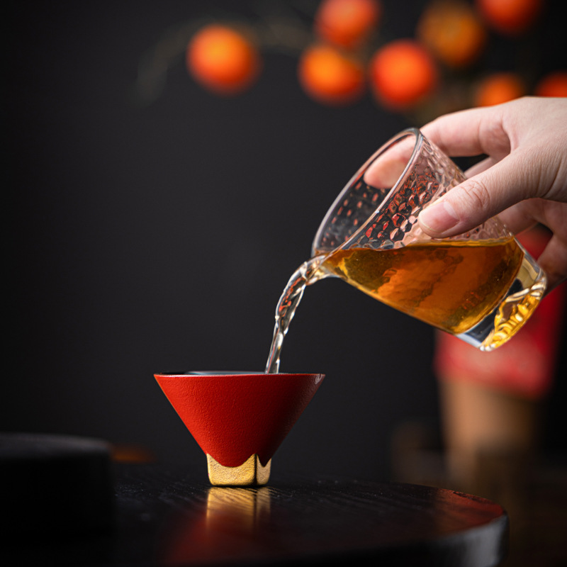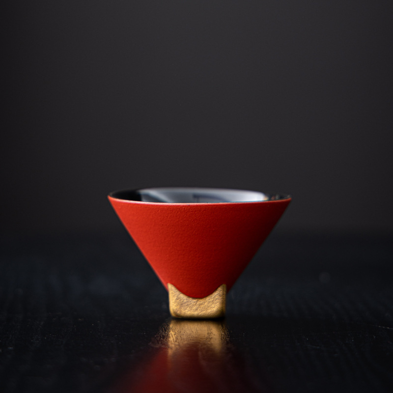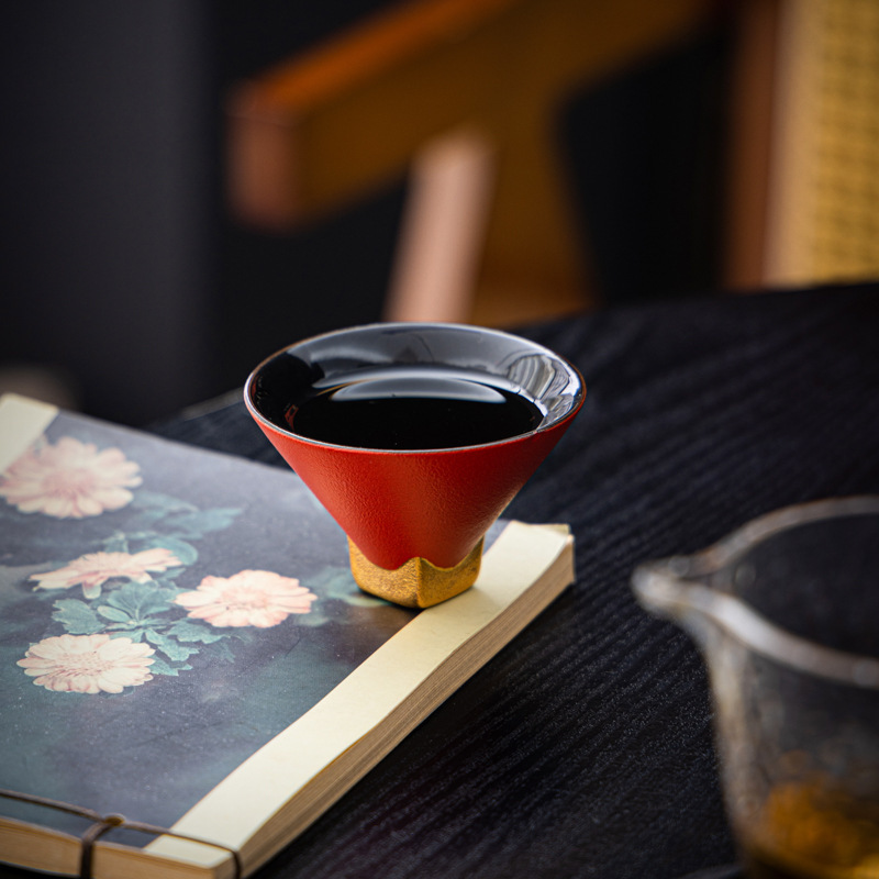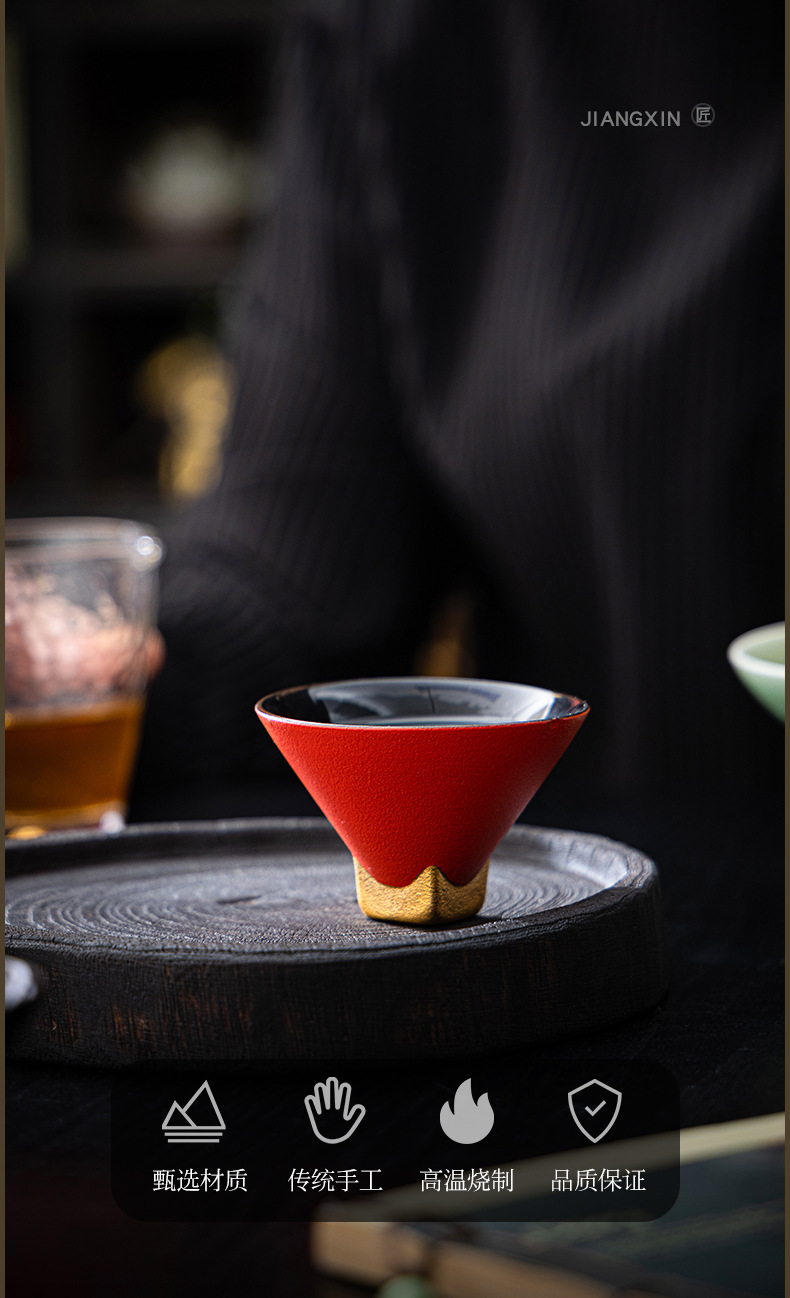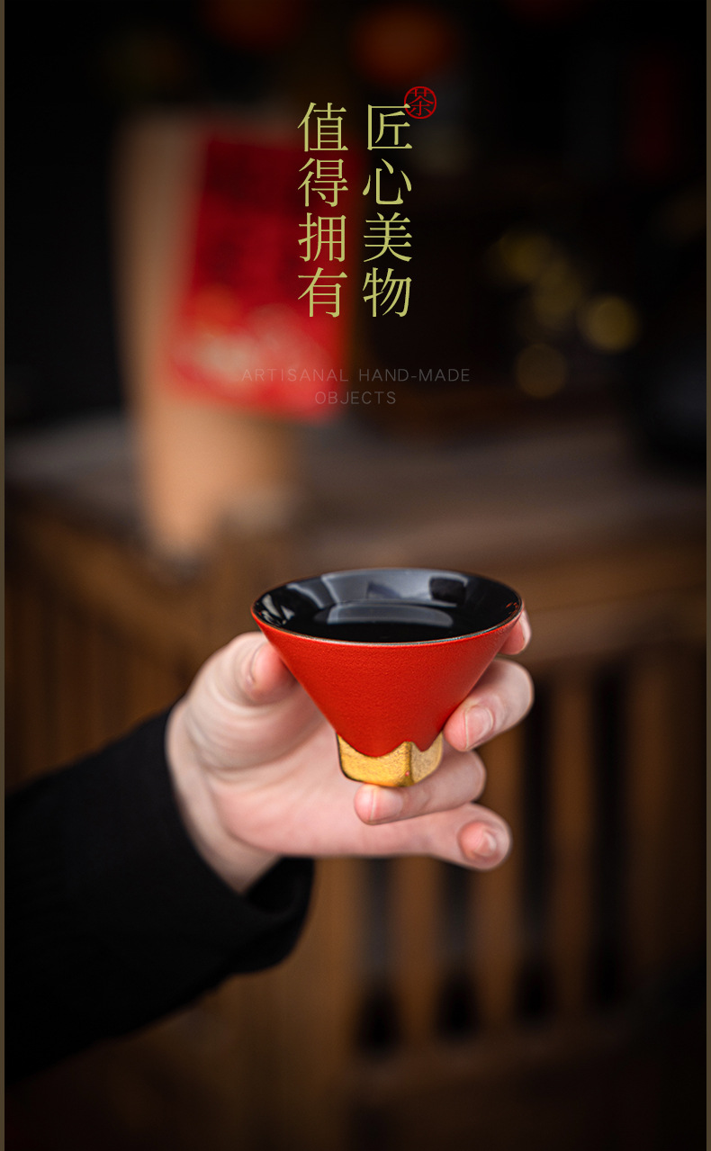 故宫红主人杯品茗杯描金斗笠杯陶瓷中式婚庆结婚新婚定logo