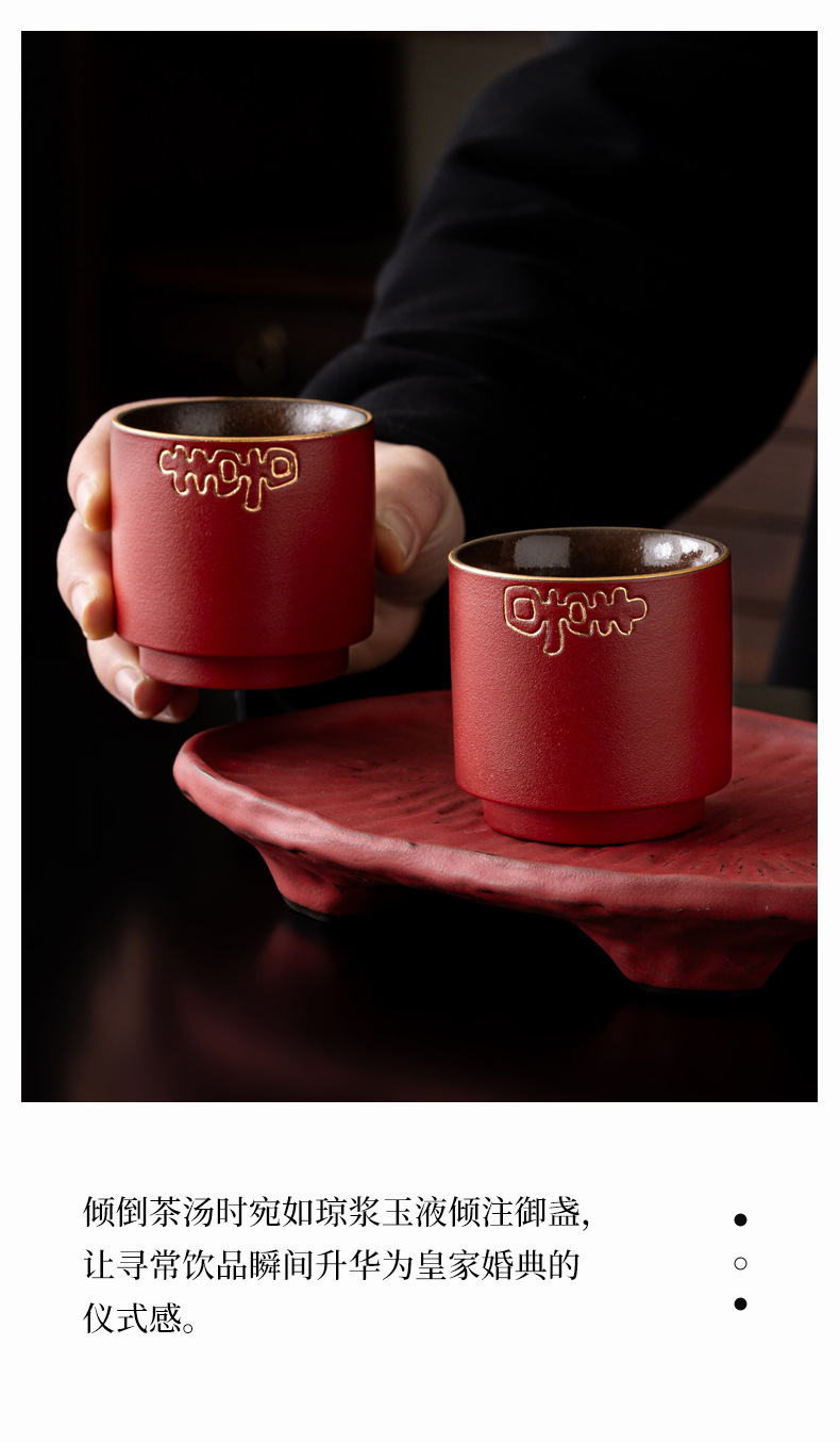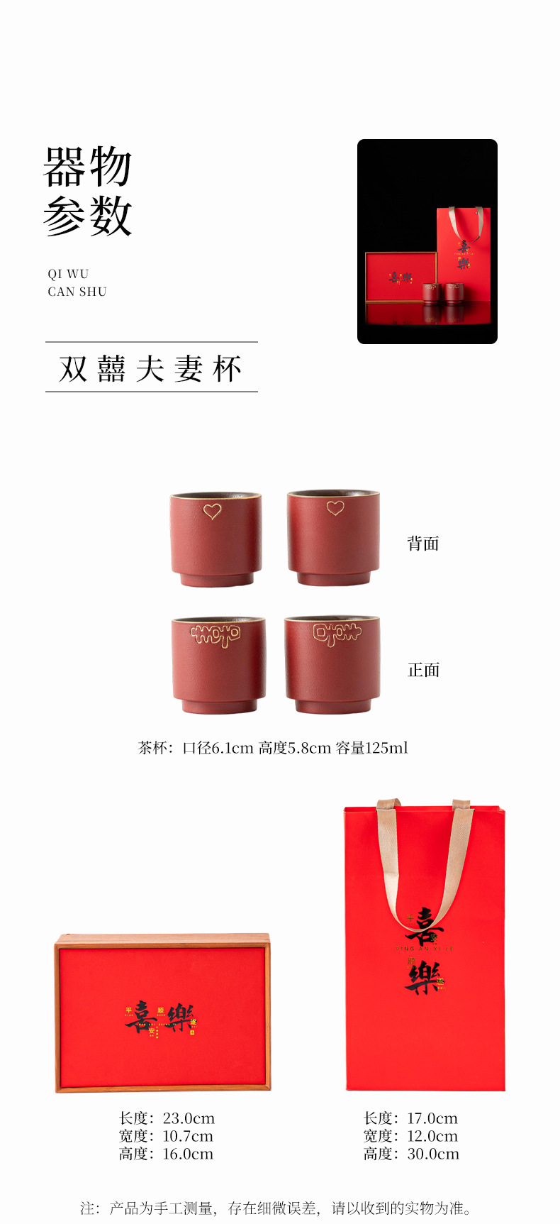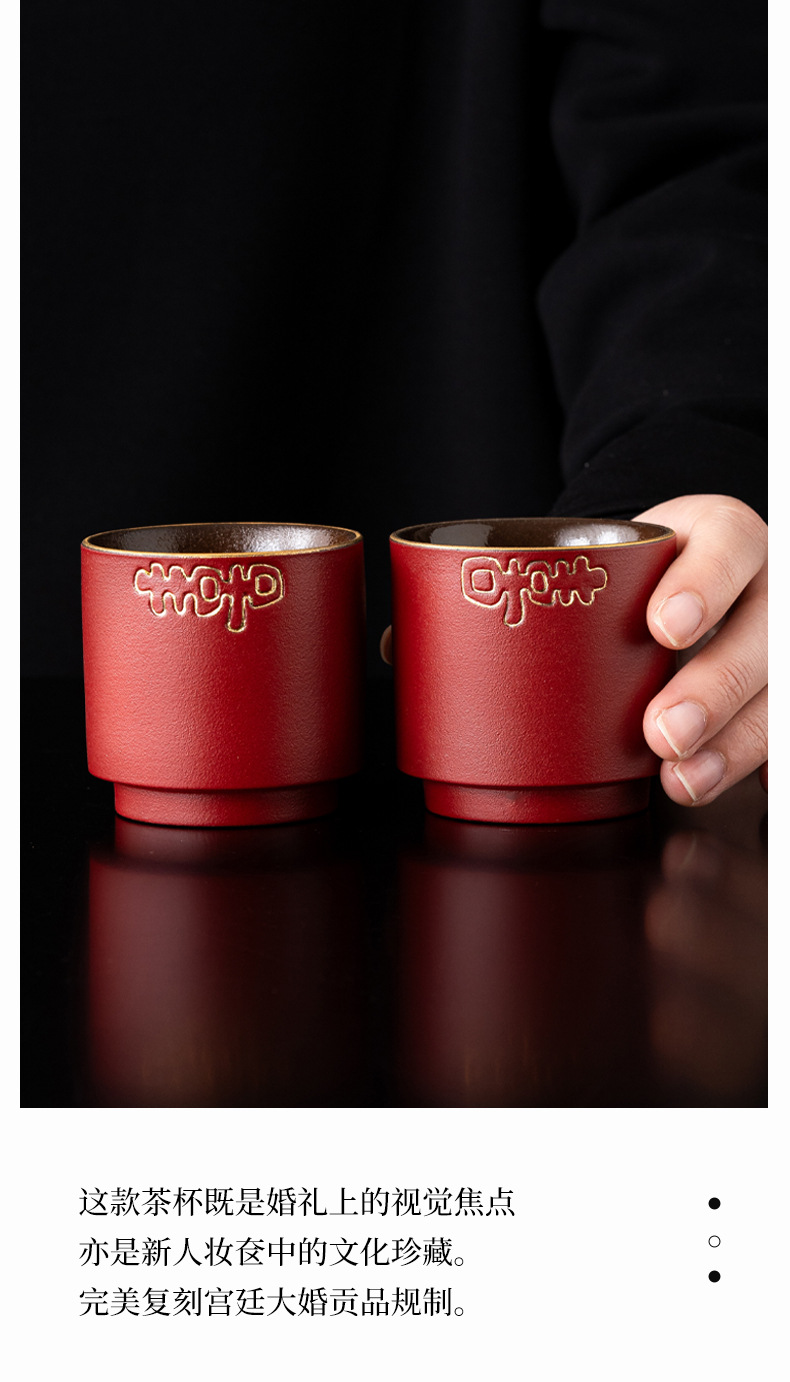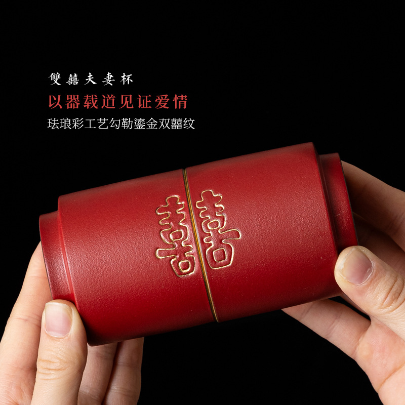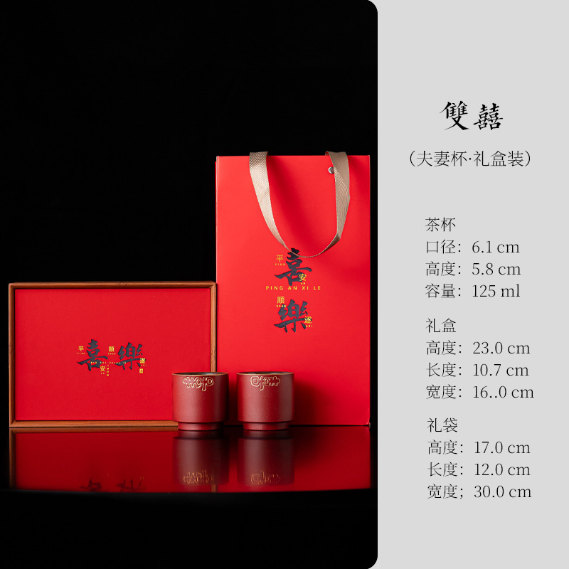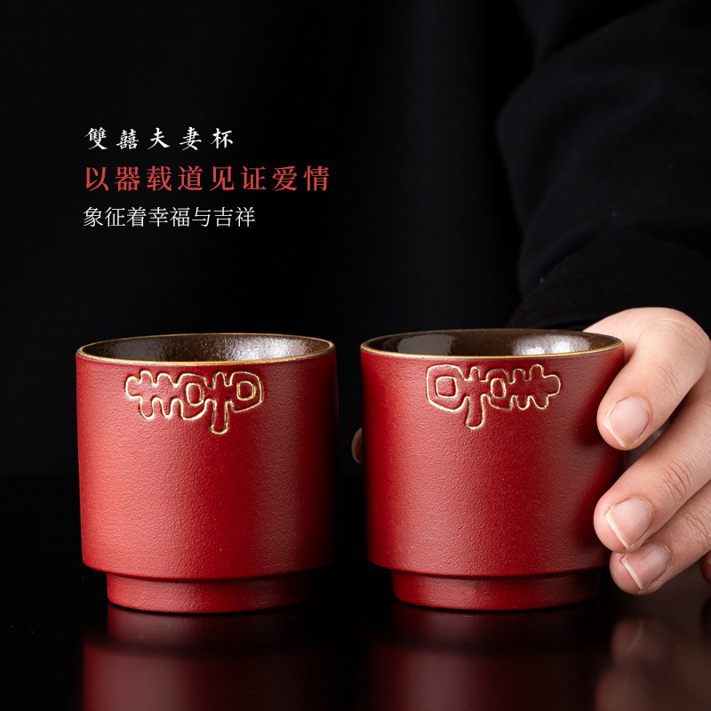 喜乐夫妻对杯文创茶杯创意婚庆礼物结婚伴手礼功夫茶具茶杯品茗杯