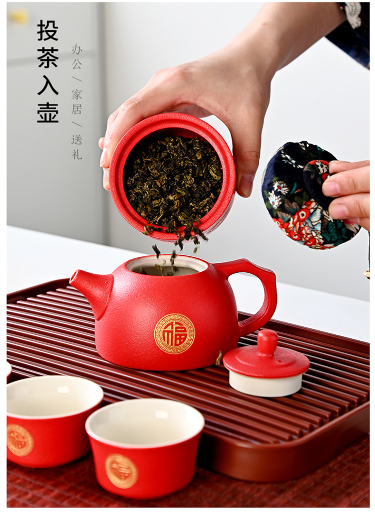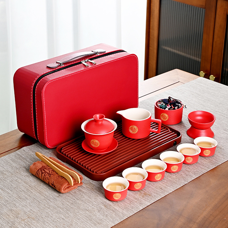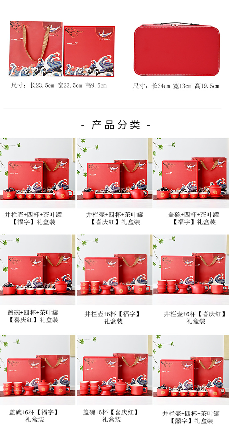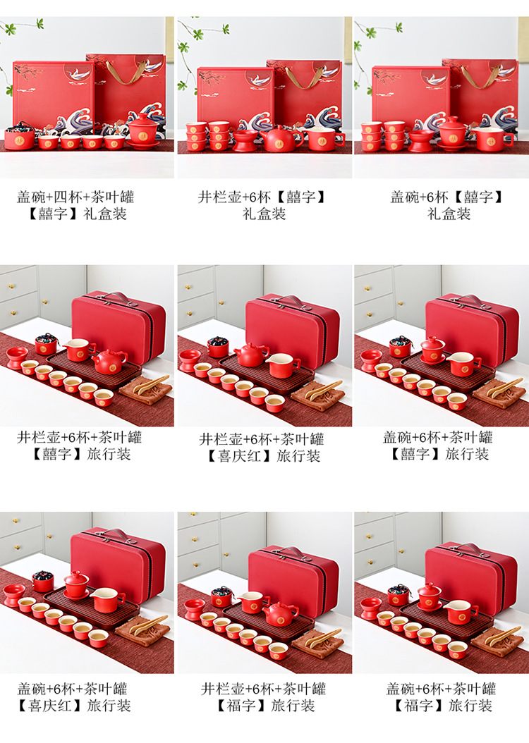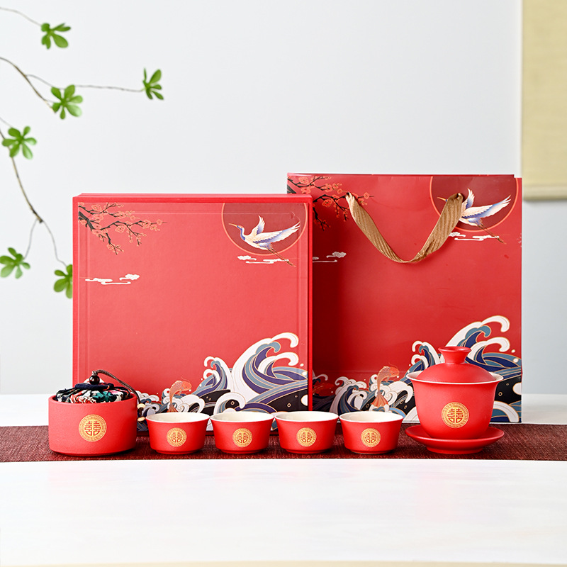 喜庆茶具结婚婚庆套装红双喜新婚敬茶壶喜庆盘婚庆礼品喜庆伴手礼