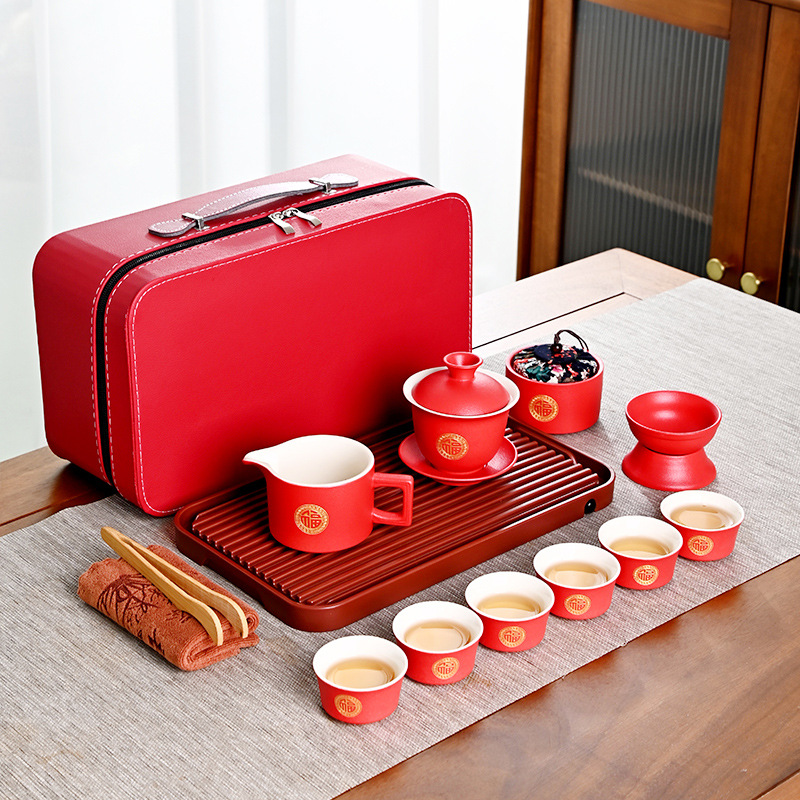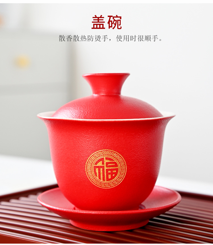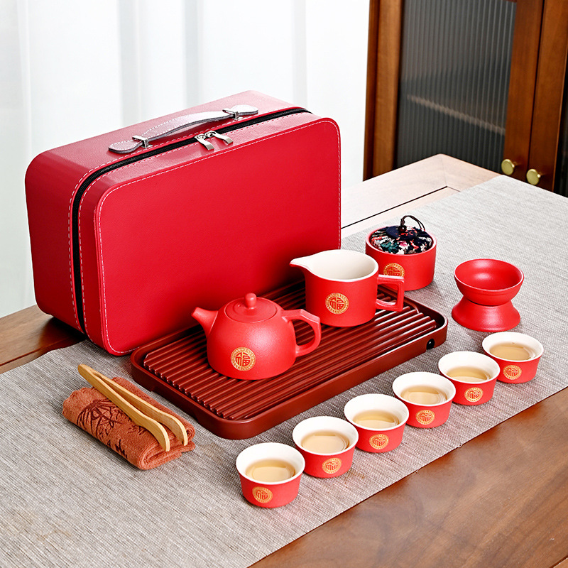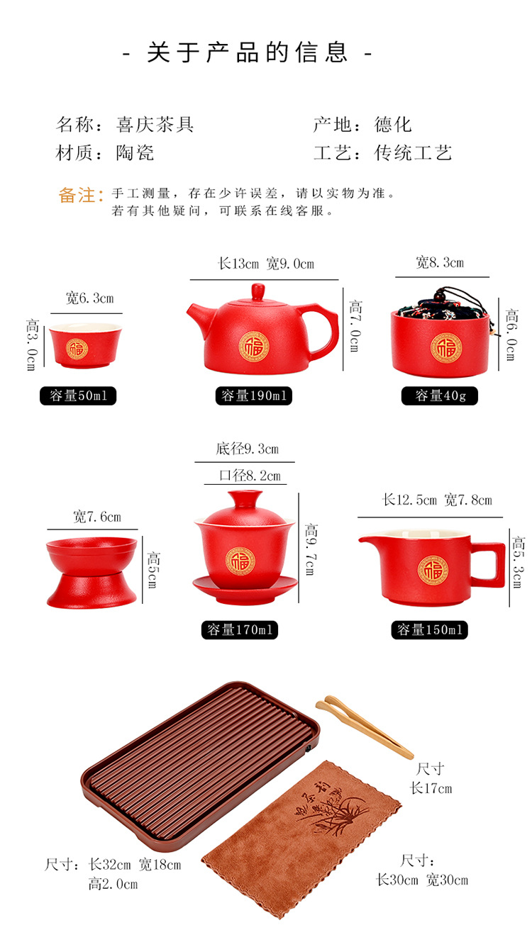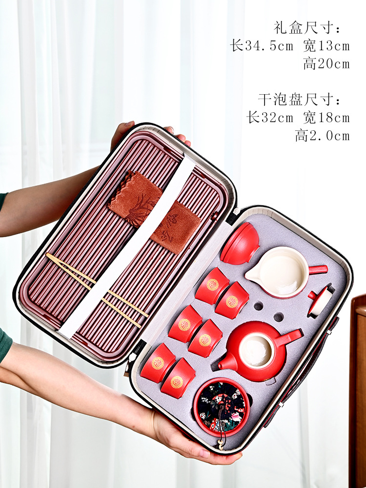 喜庆茶具结婚婚庆套装红双喜新婚敬茶壶喜庆盘婚庆礼品喜庆伴手礼