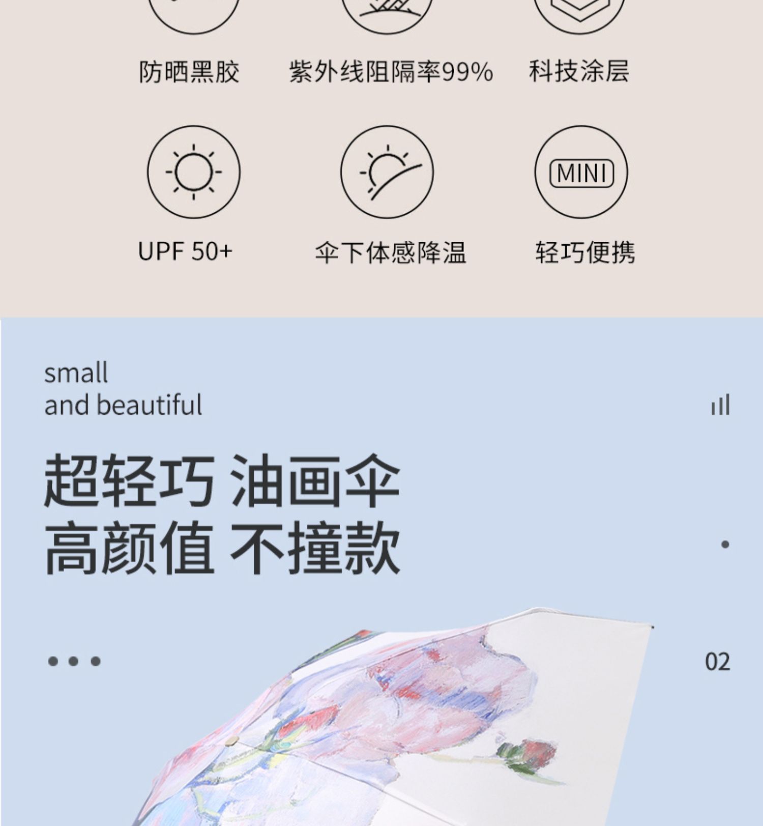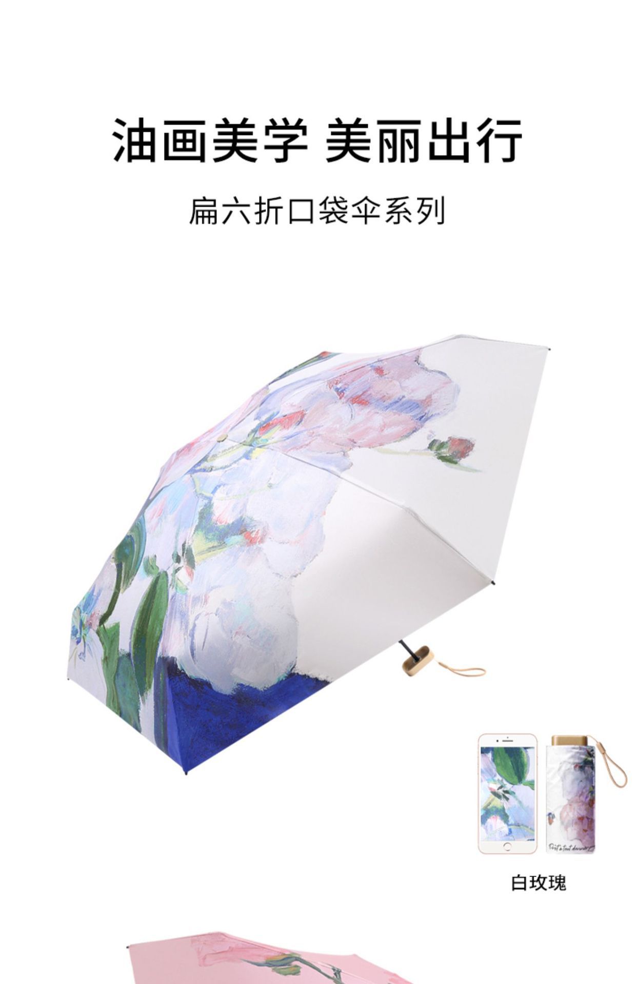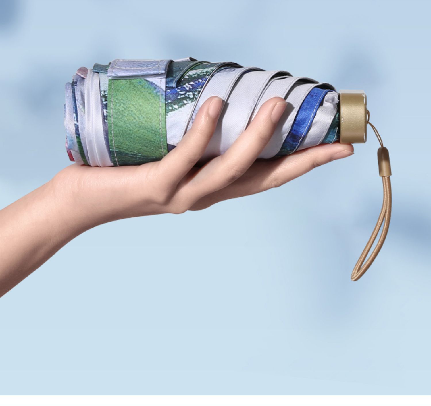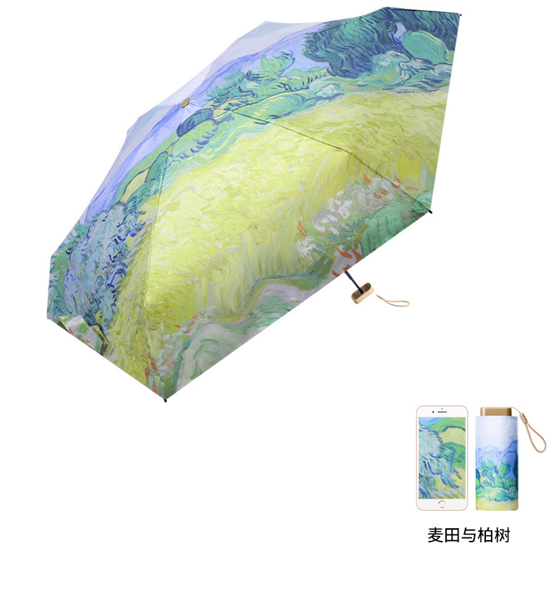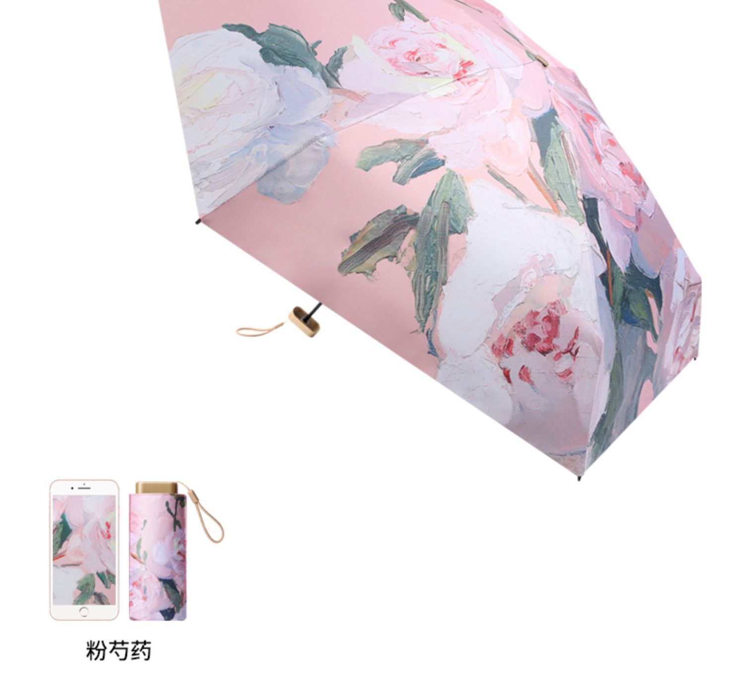 晴雨两用太阳伞小巧便携防晒防紫外线折叠手绘插画高级感文艺雨伞