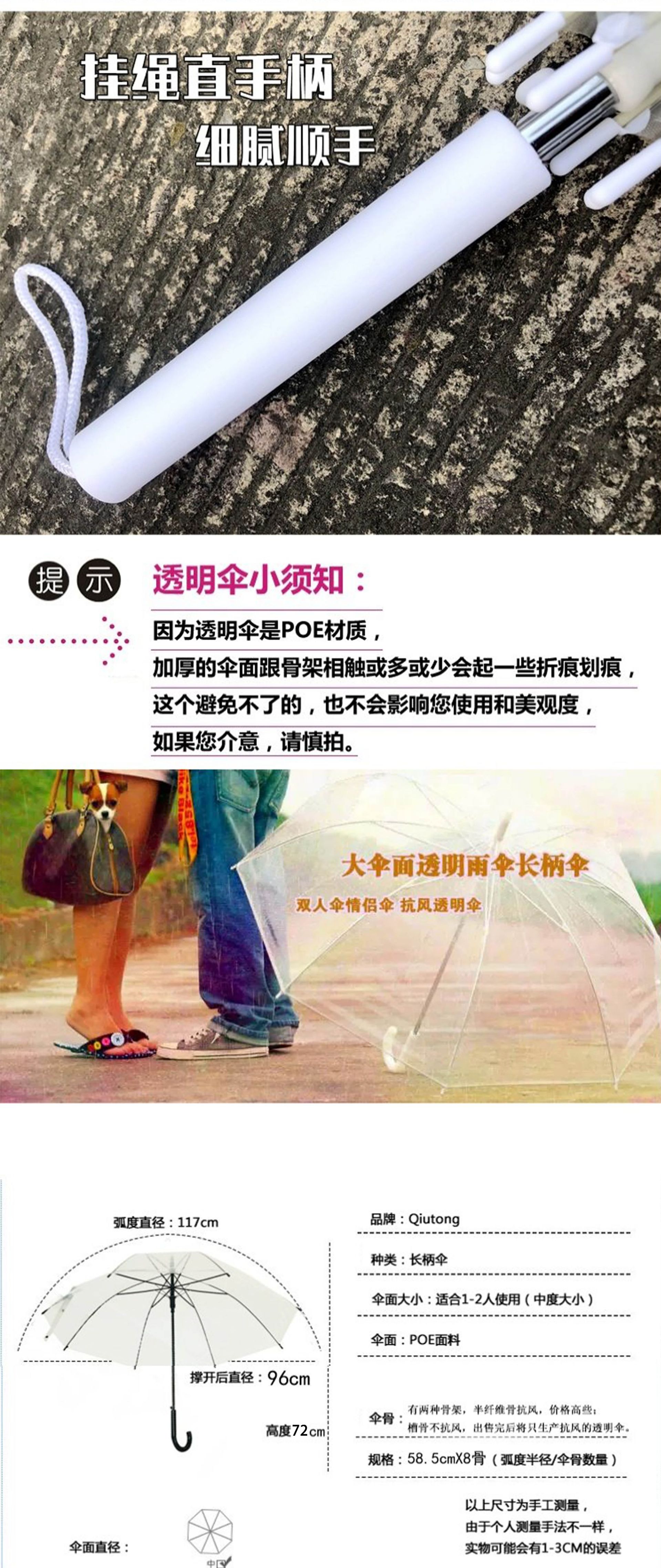 小清新长柄透明伞彩色直杆透明雨伞自动伞礼品广告伞印logo