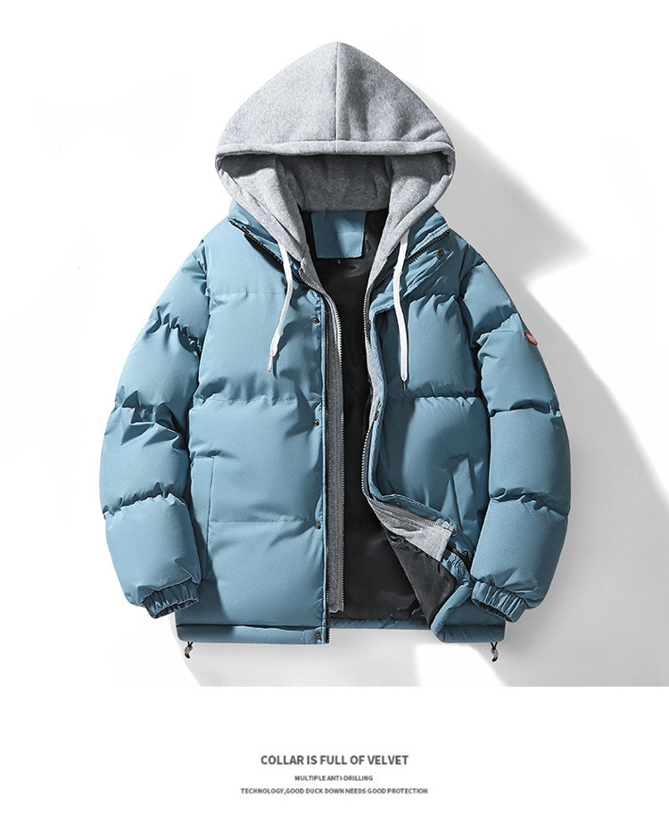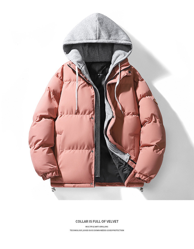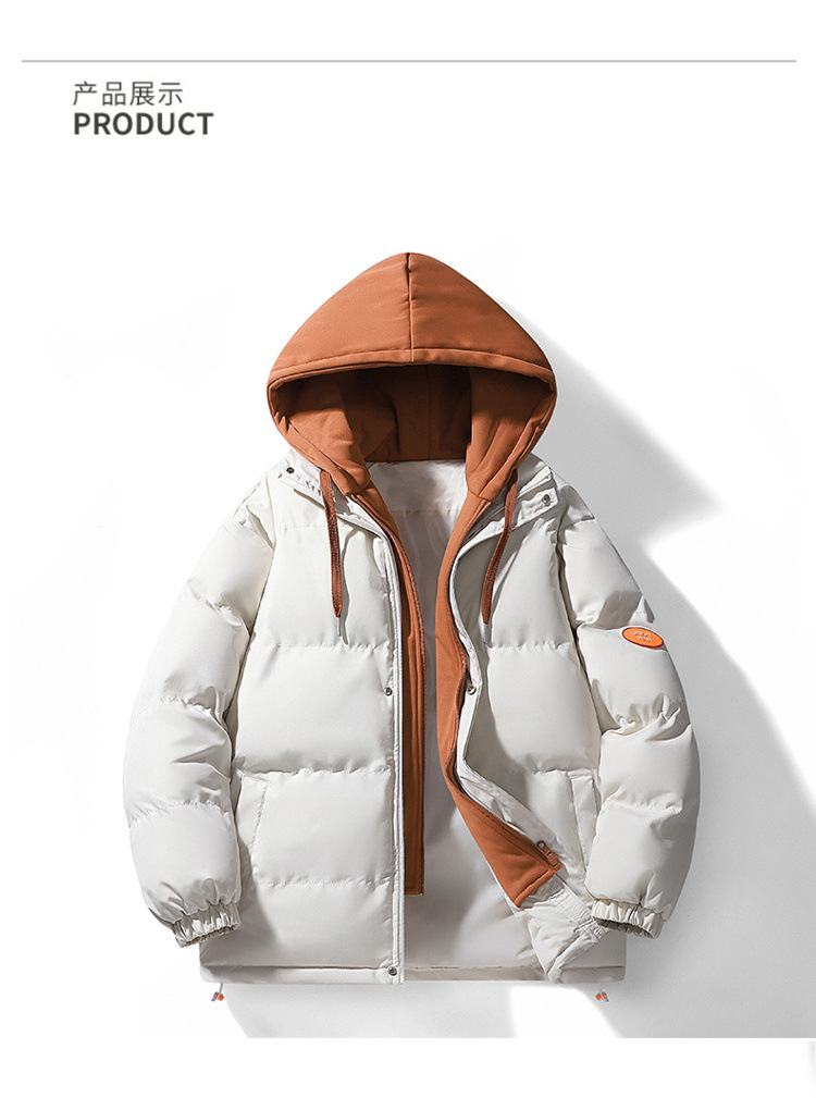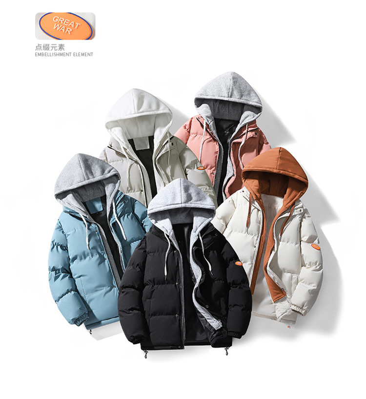 棉衣男秋冬季假两件男士棉服韩版潮流百搭外套加厚防寒保暖棉袄男