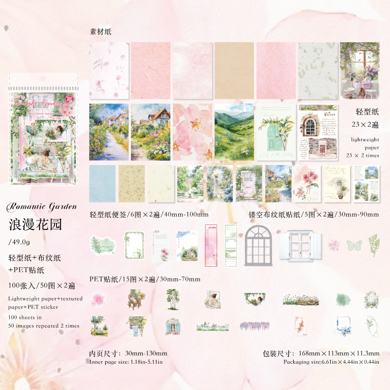 跨境陌墨素材包水彩生活图鉴系列复古格调手帐装饰拼贴素材100张