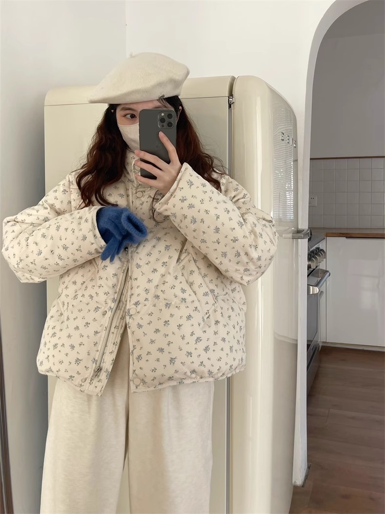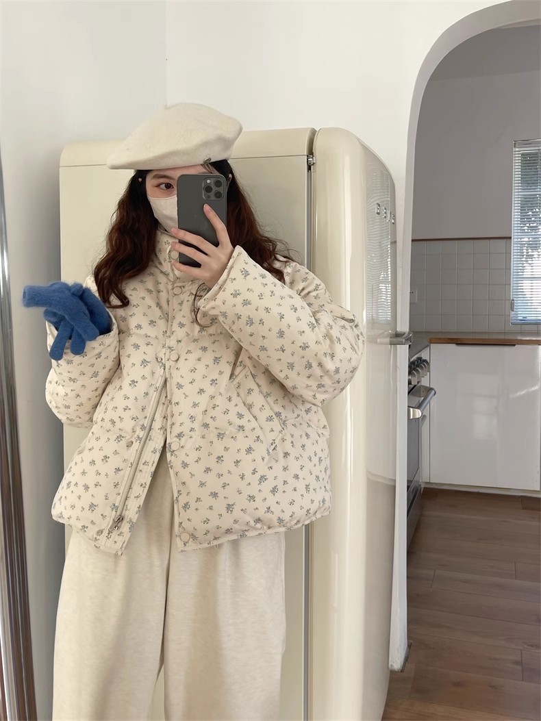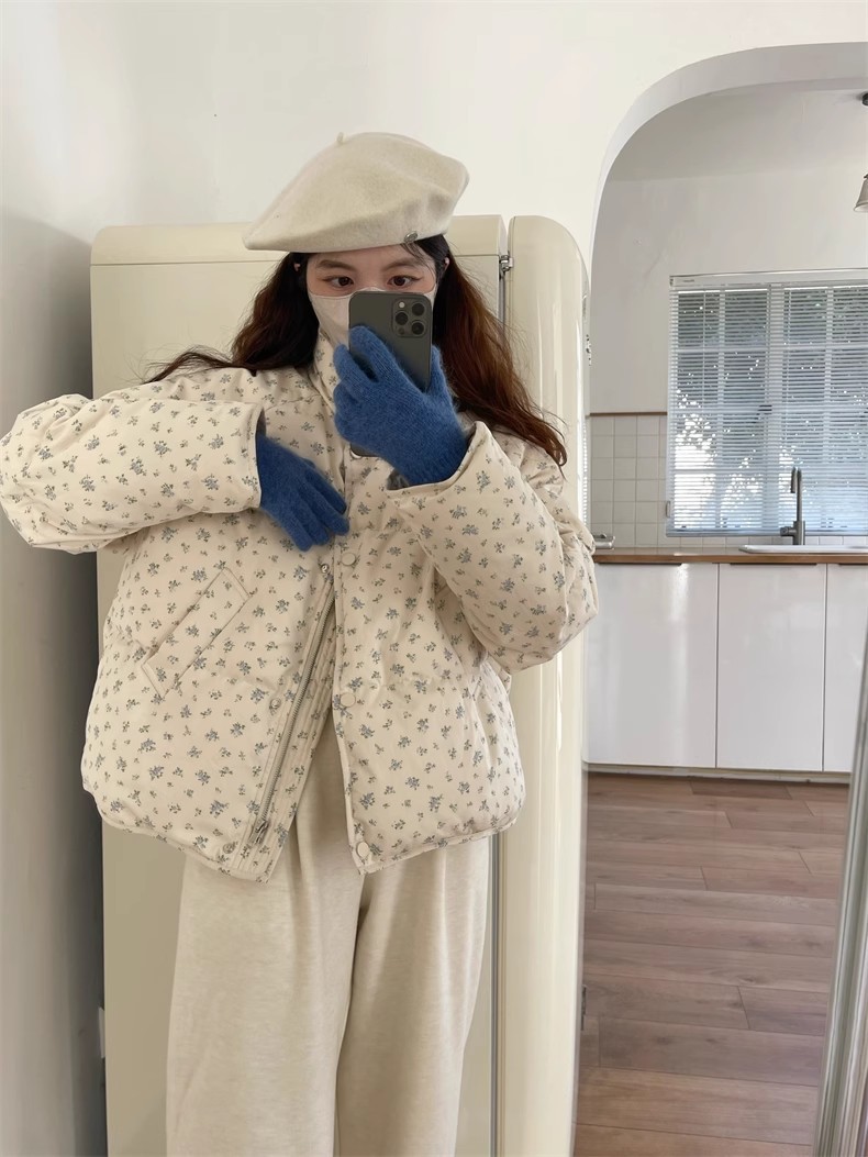 韩版小清新碎花立领棉服女冬季新款设计感宽松加厚学生棉衣短外套