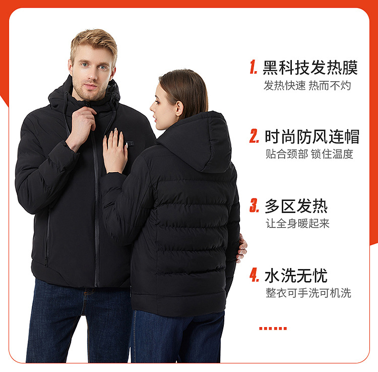 跨境新款冬季发热棉服15区USB发热智能恒温保暖防寒发热棉衣男款