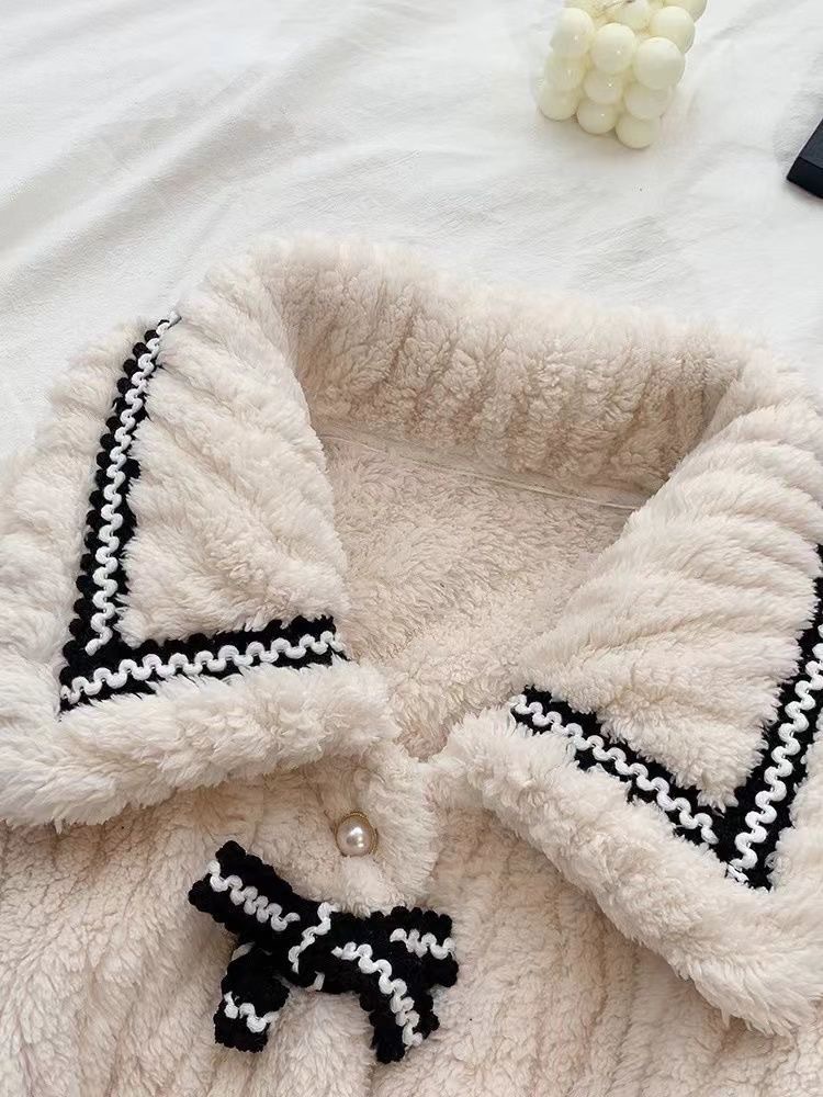 2025新款珊瑚绒睡衣女秋冬季加厚加绒保暖高级感蝴蝶结开衫家居服