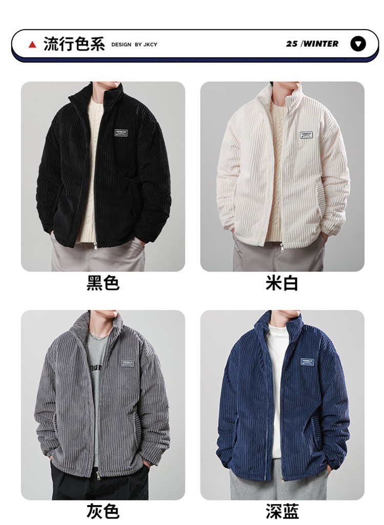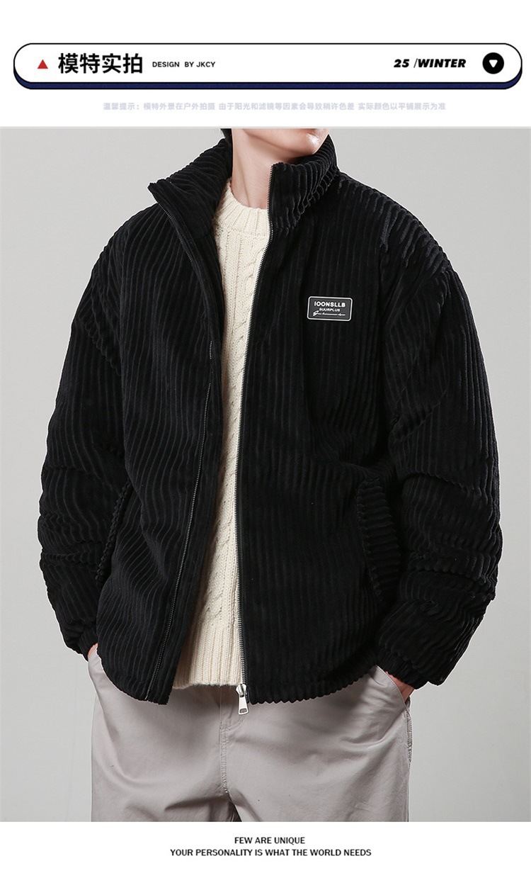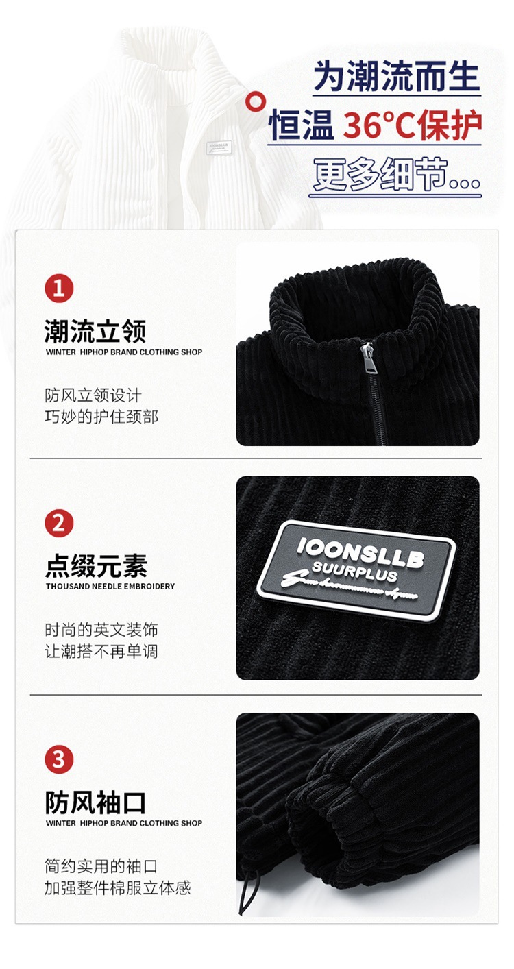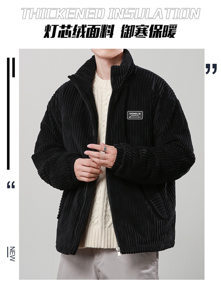 2024新款秋冬立领灯芯绒棉衣男情侣加厚防风棉服美式复古抗寒外套