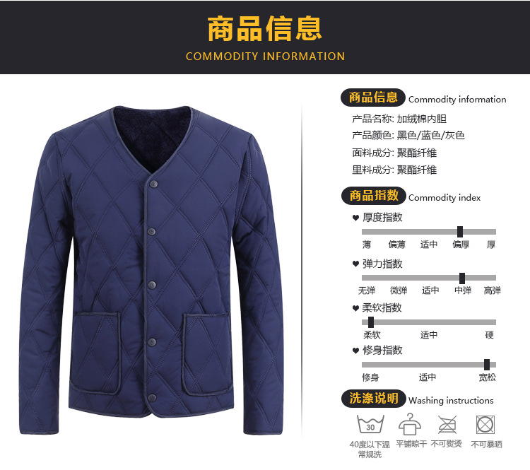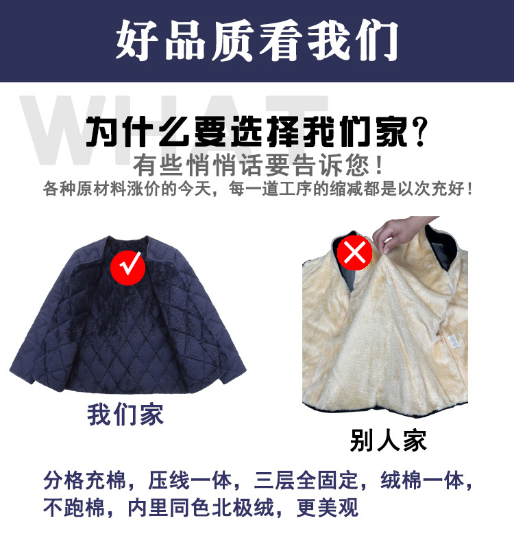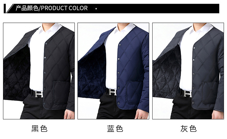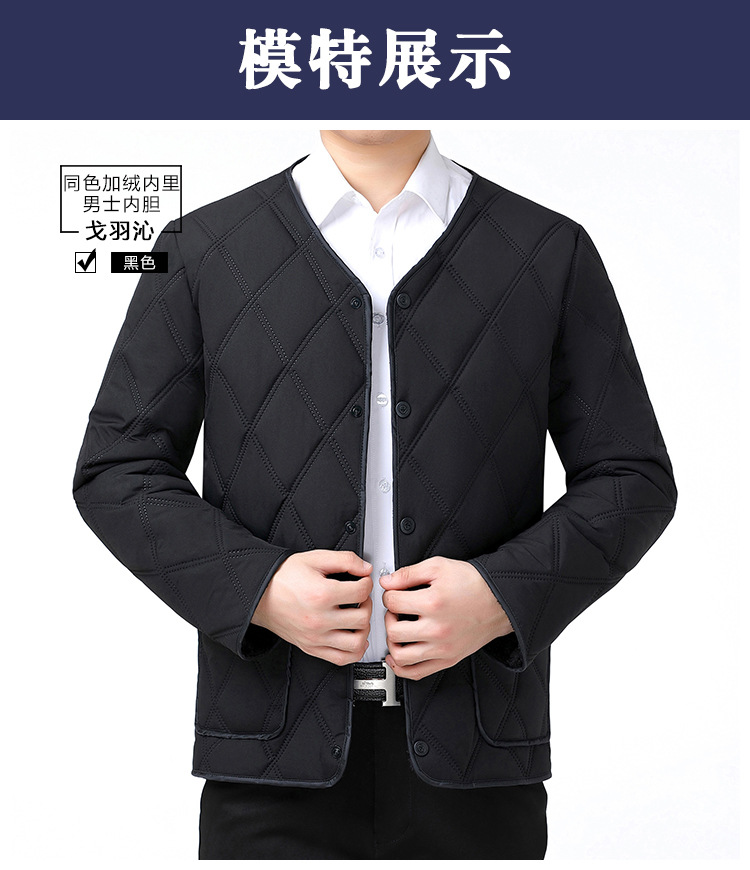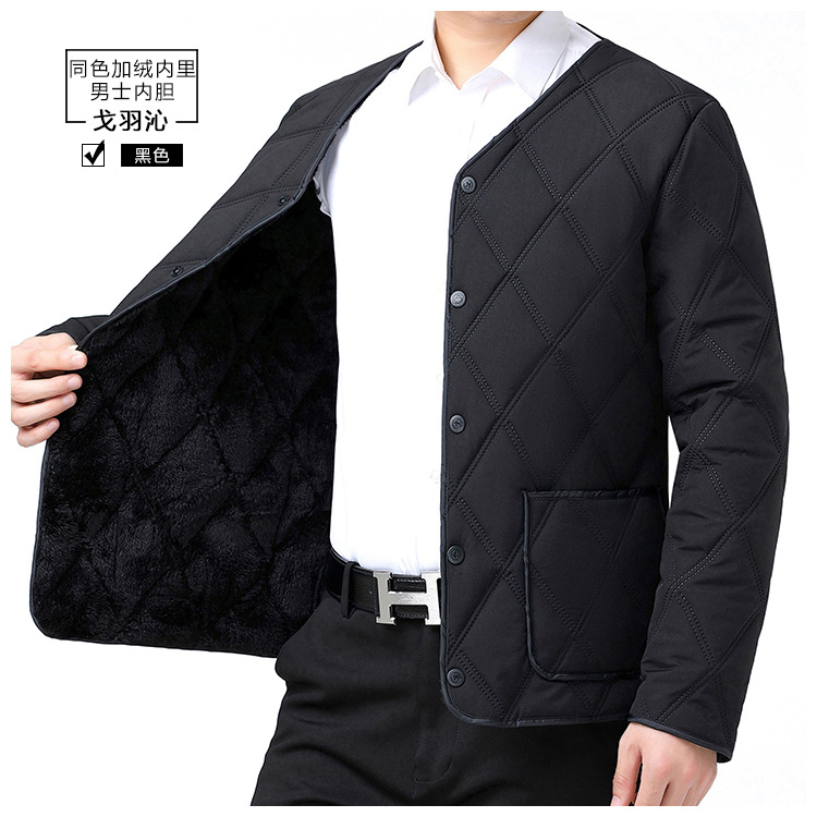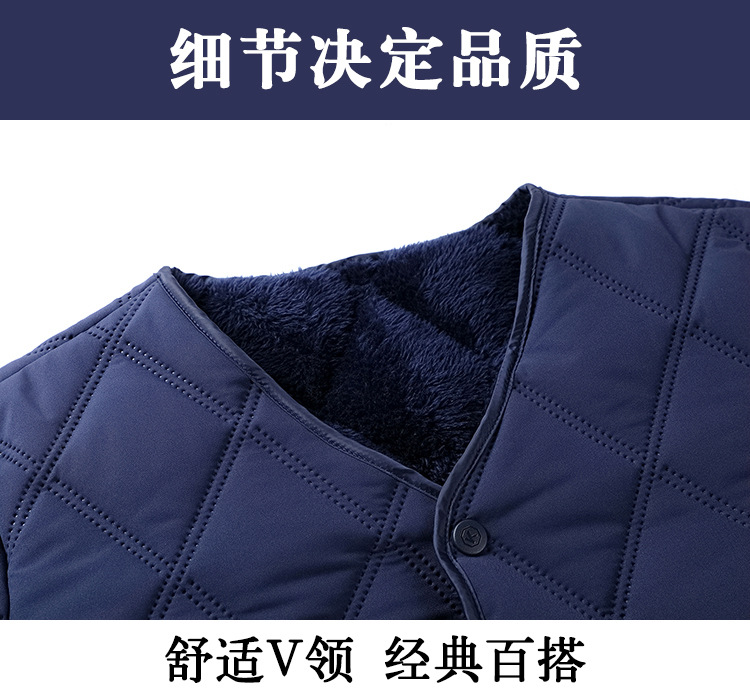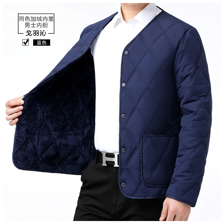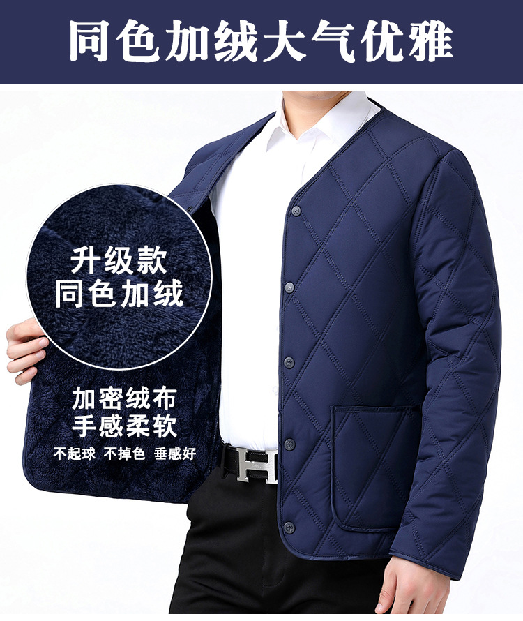 中老年羽绒棉内胆短款新款男士同色加绒棉衣加厚爸爸装大码棉服