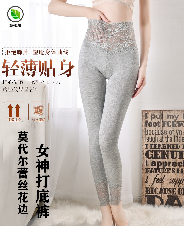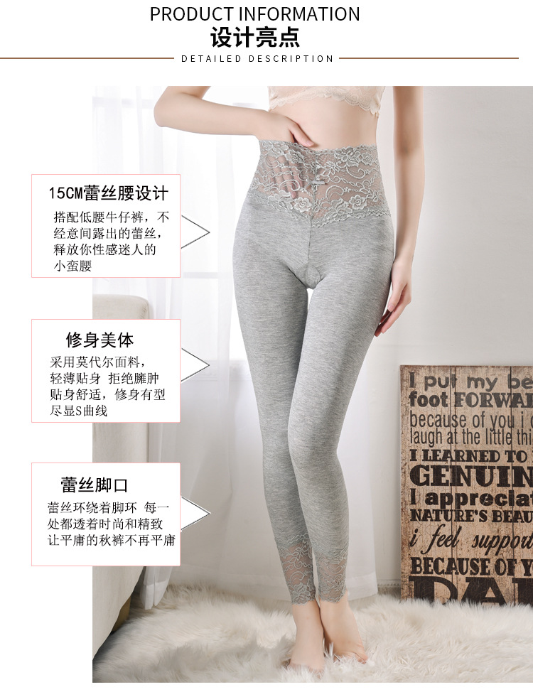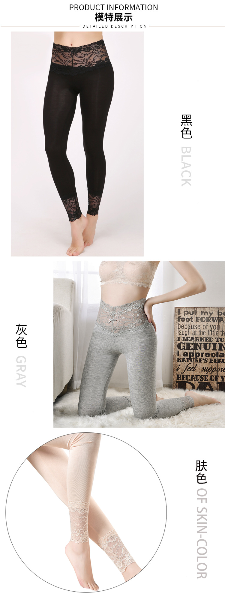 莫代尔打底裤女可外穿春秋款薄款保暖裤弹力蕾丝花边莫代尔秋裤女