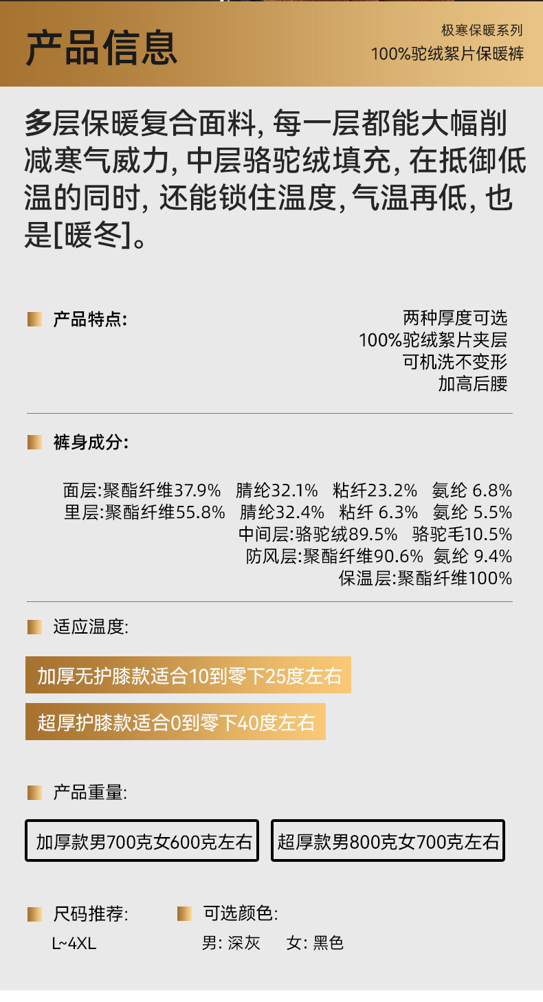 五层驼绒保暖裤护膝中老年厚款加肥棉裤男士护腰驼绒加厚女士秋裤