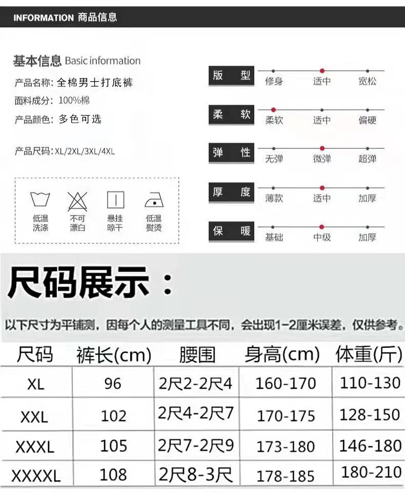 100%纯棉中老年高腰秋裤男女薄款宽松加大码棉毛裤全棉衬裤保暖裤