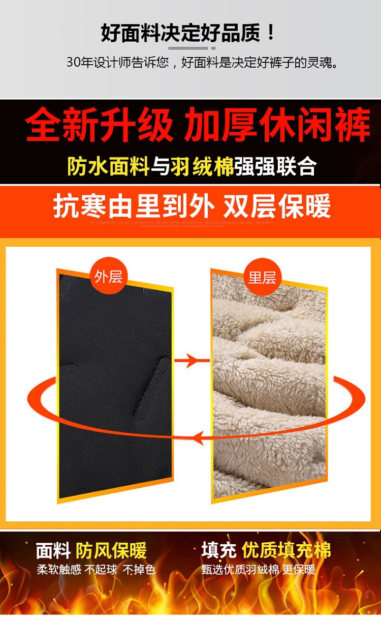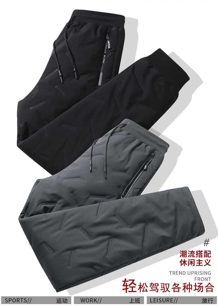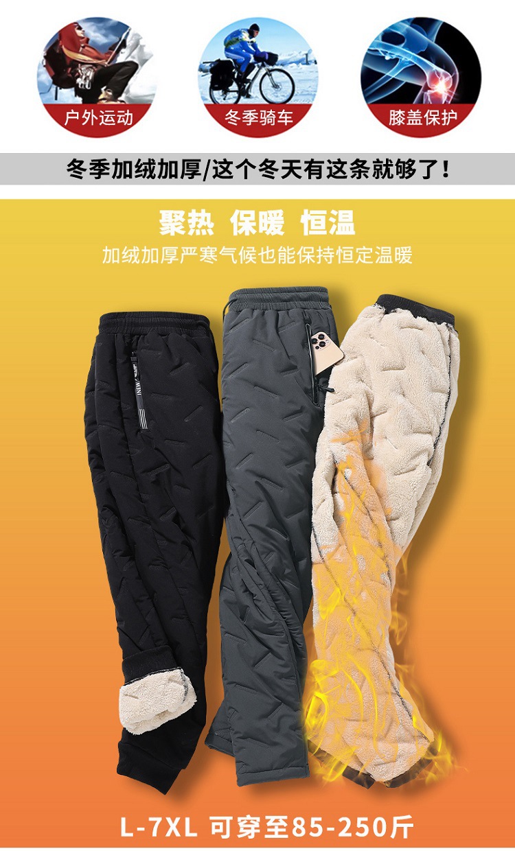 工厂冬休闲长裤男羽绒棉裤男式加绒裤加厚保暖运动羊羔绒大码卫裤