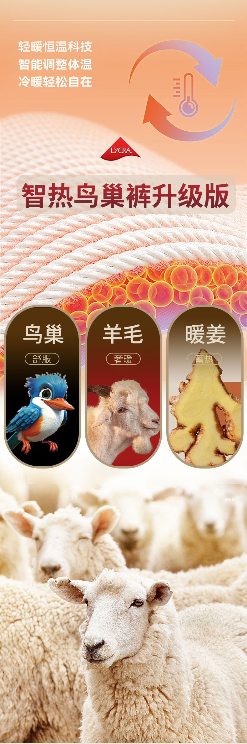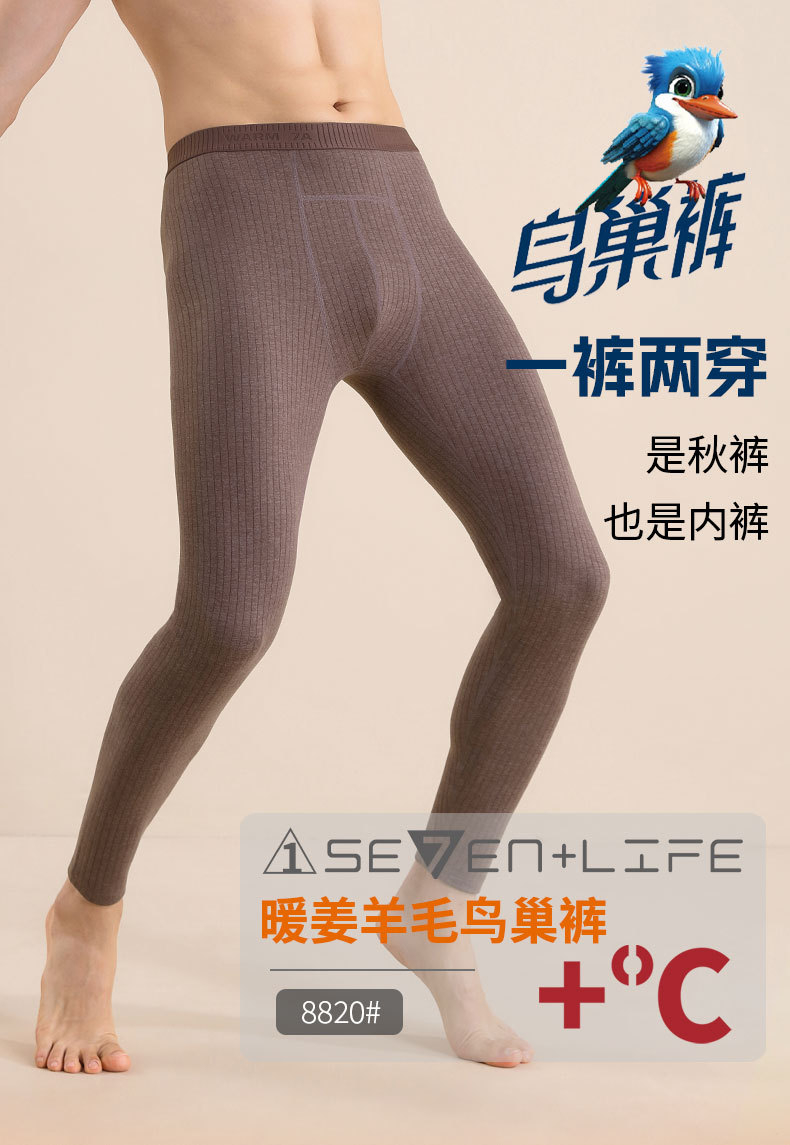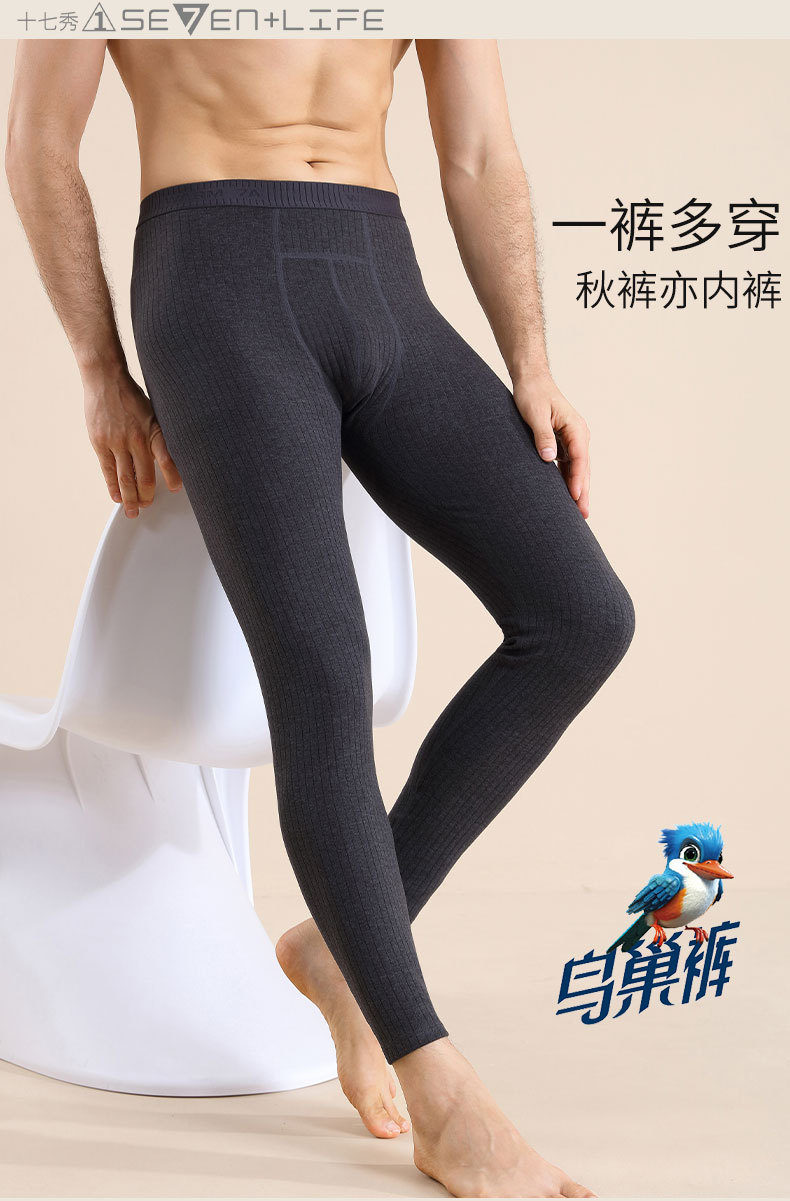 慕容条男士秋裤鸟巢打底裤加绒毛裤免穿内裤加厚蚕丝羊毛保暖裤