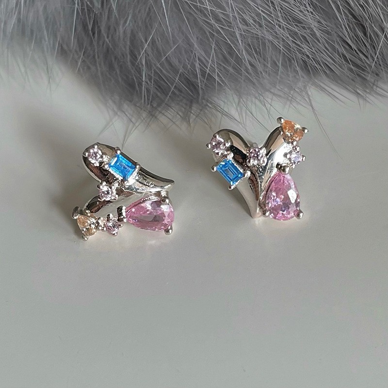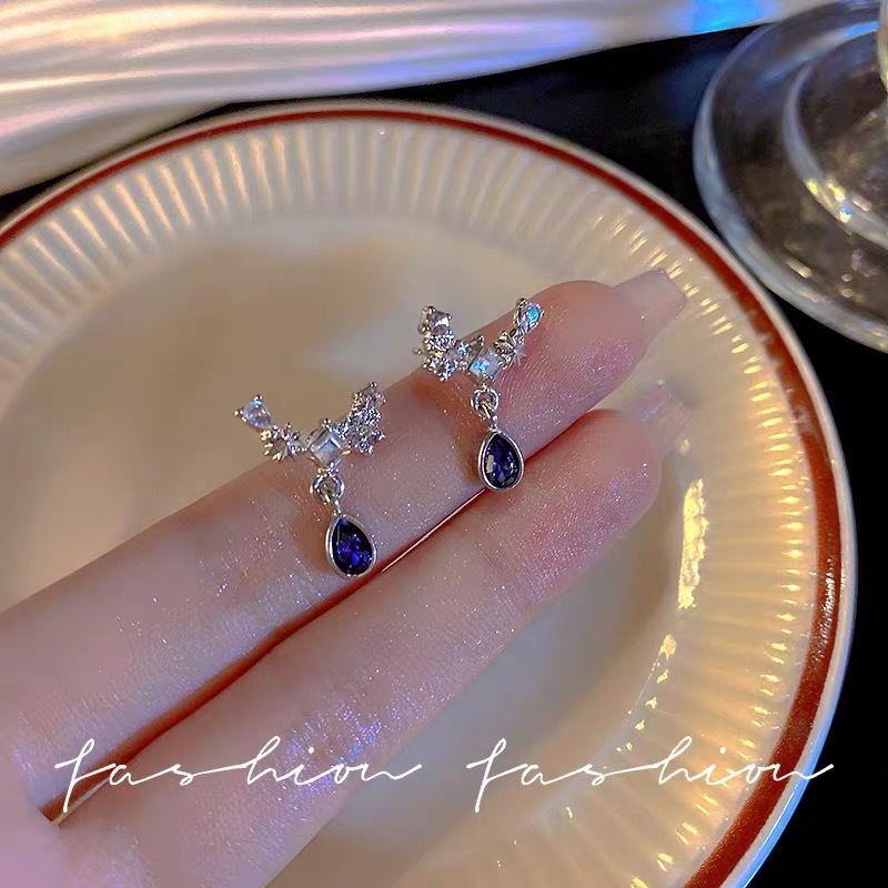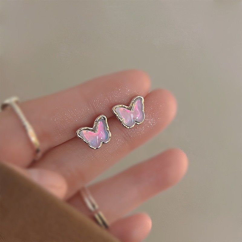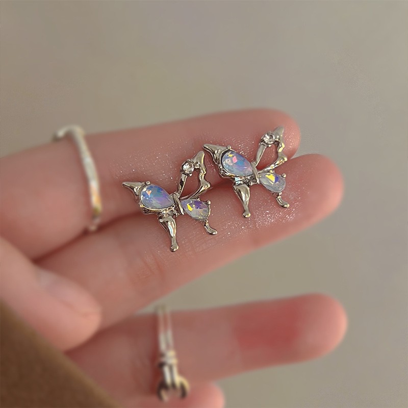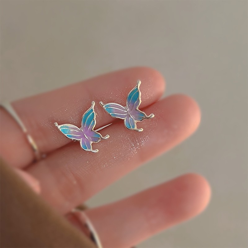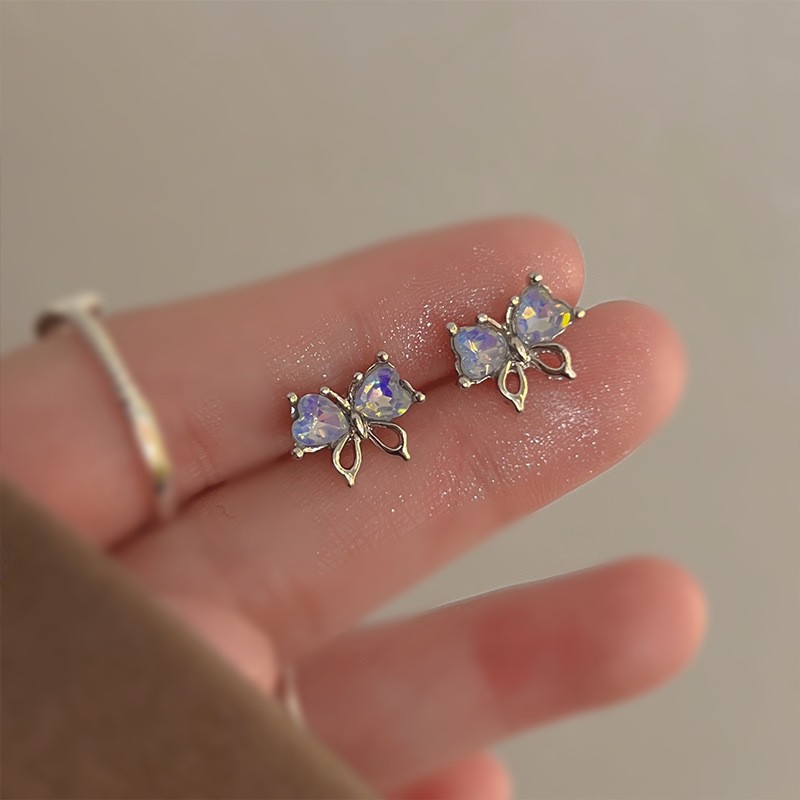 S925银针耳钉女蝴蝶彩钻仙气ins风简约小巧耳环直播爆款批发耳饰