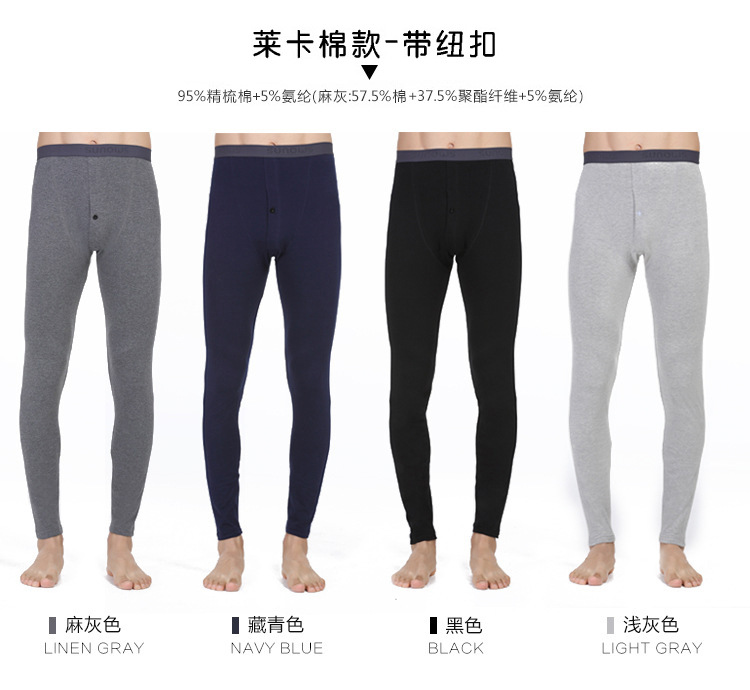 男士精梳棉秋裤无痕弹力薄款修身打底裤保暖秋冬莱卡中腰单件裤子