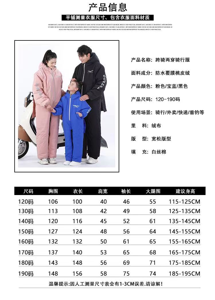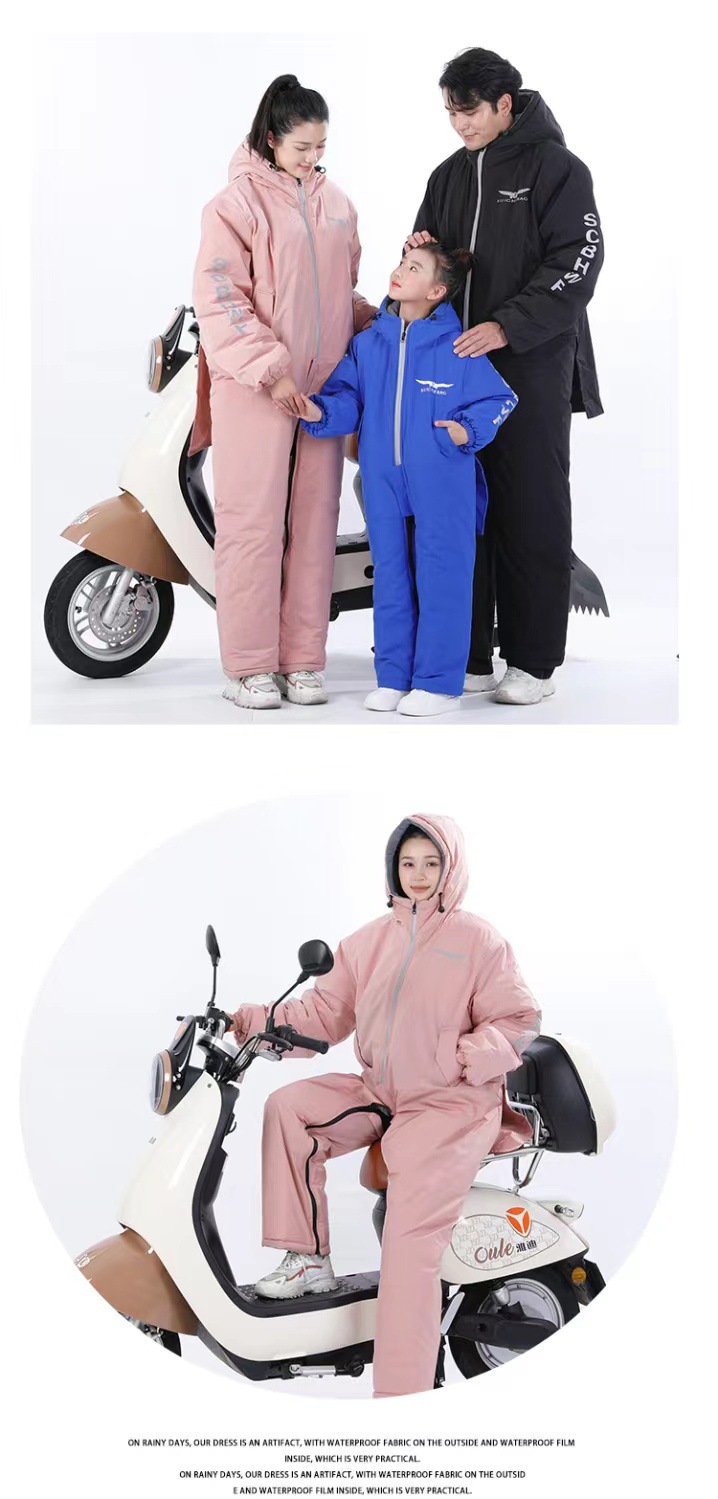 ⇛电动车挡风衣冬季亲子款分腿式加绒加厚防风防雨连体户外防寒服