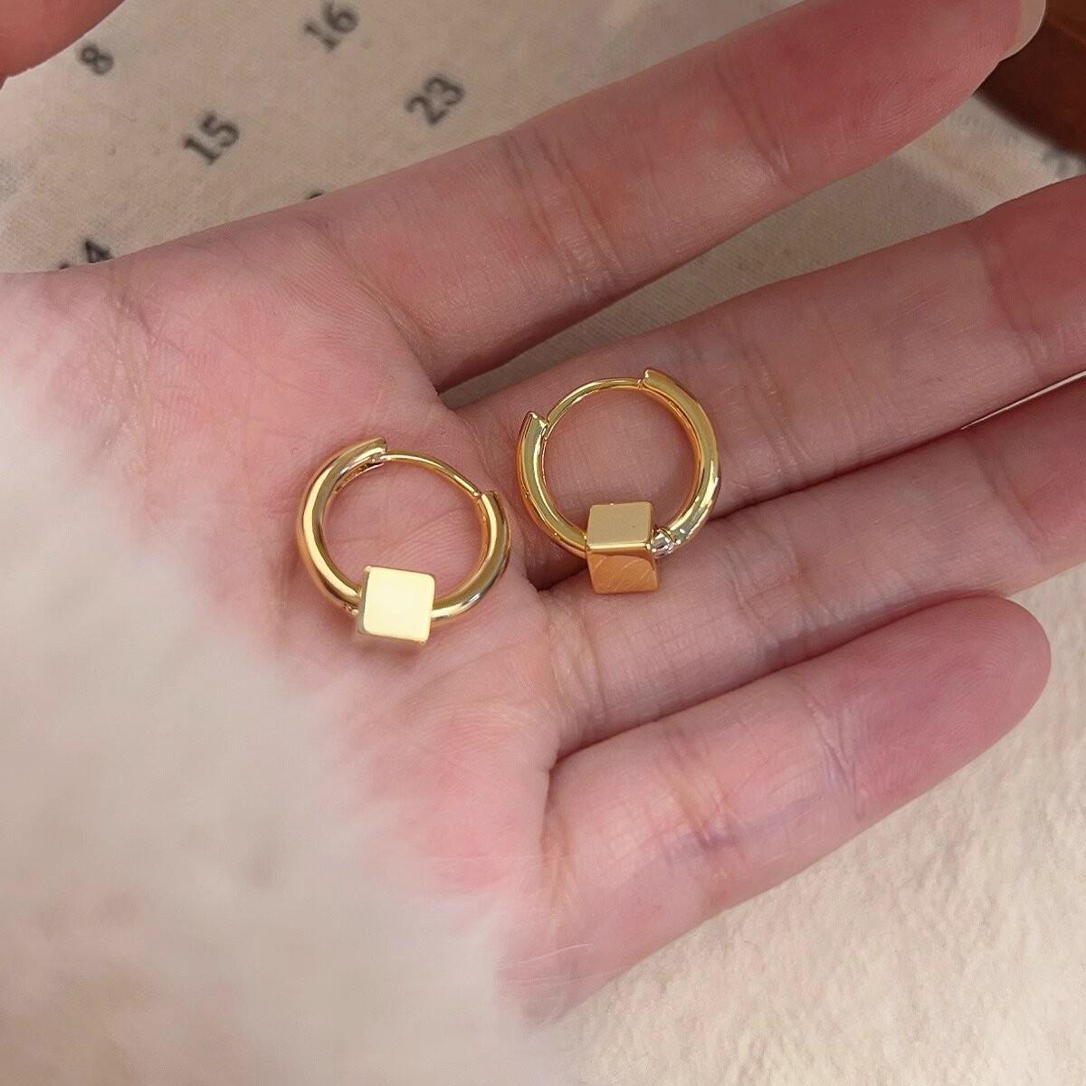 镀真金S925纯银针2024新款金属耳环小众设计感冷淡风气质高级耳钉