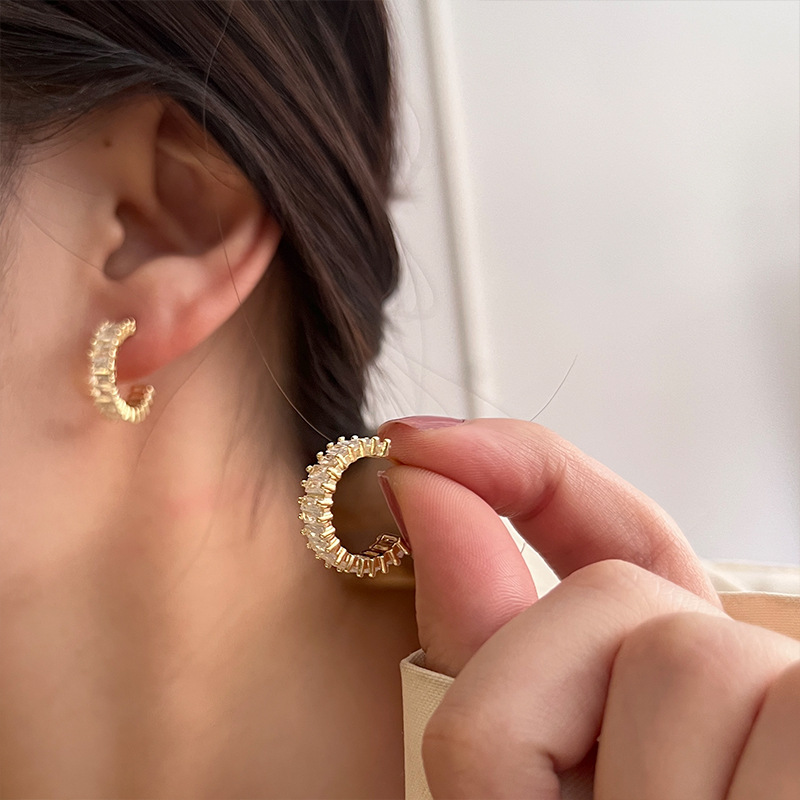 高级感锆石不规则耳饰女2023新款潮时尚个性耳钉轻奢气质小众设计