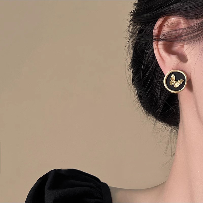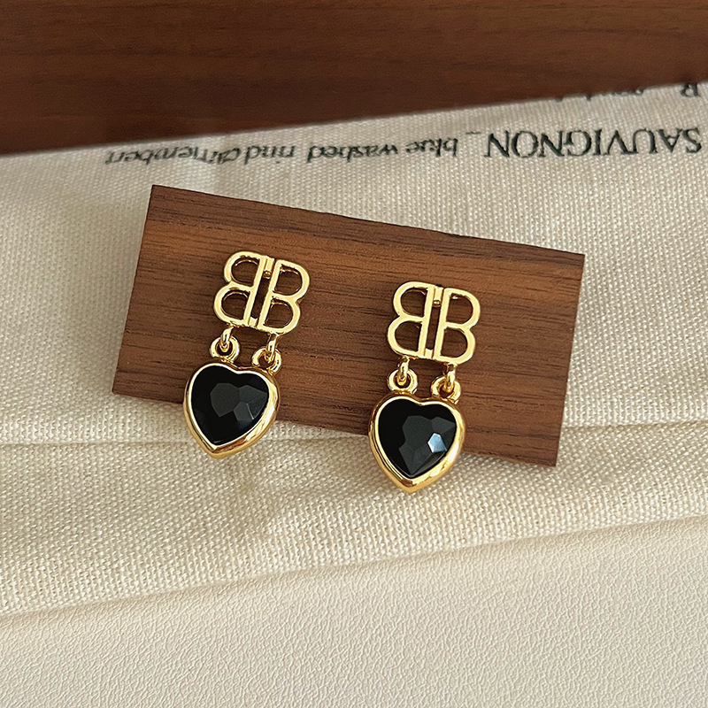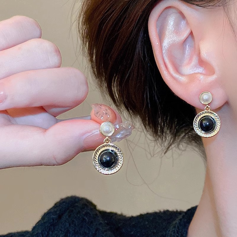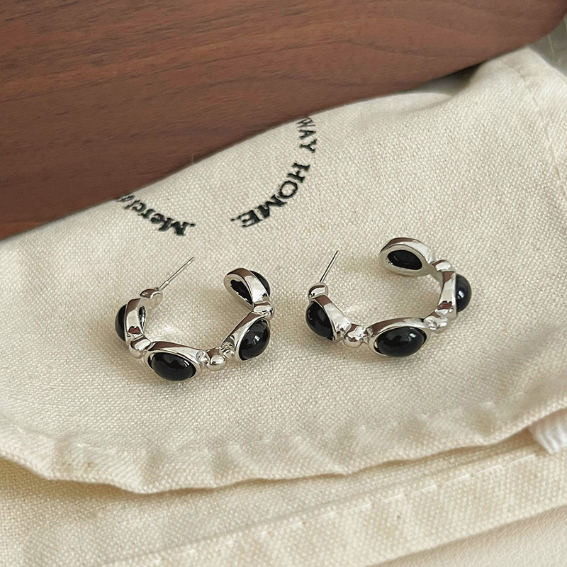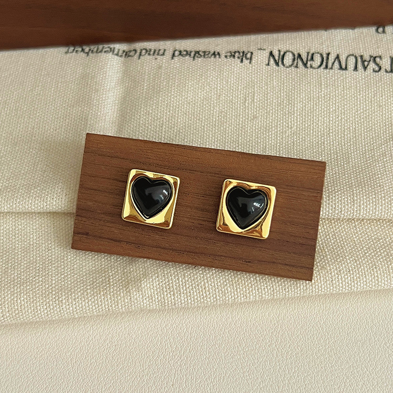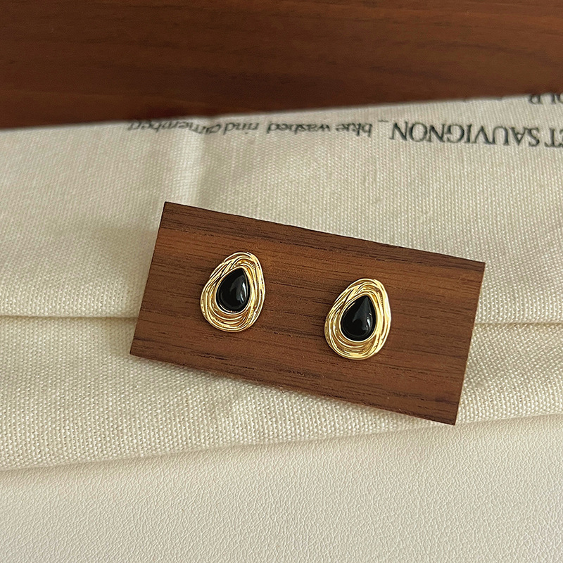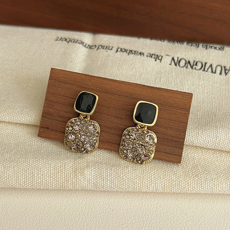 黑色耳环女复古港风耳坠轻奢几何高级感耳钉独特金属耳圈气质耳饰
