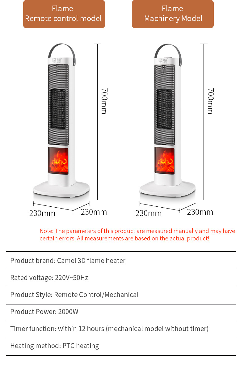 跨境取暖器暖风机3D仿真火焰壁炉加热器摇头遥控小太阳热风电暖器