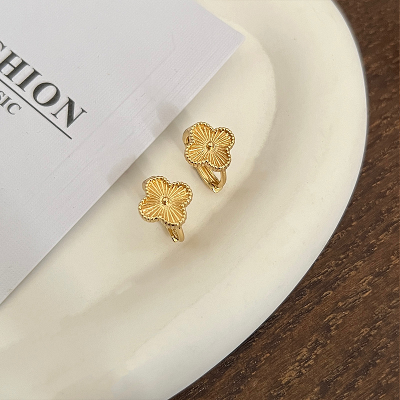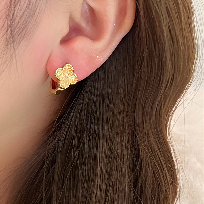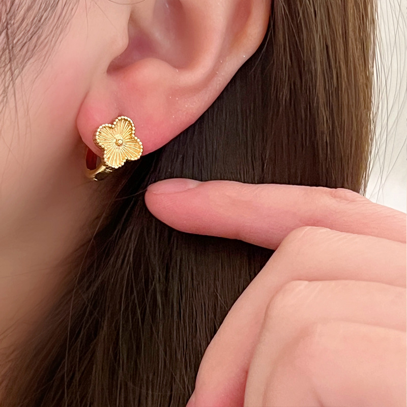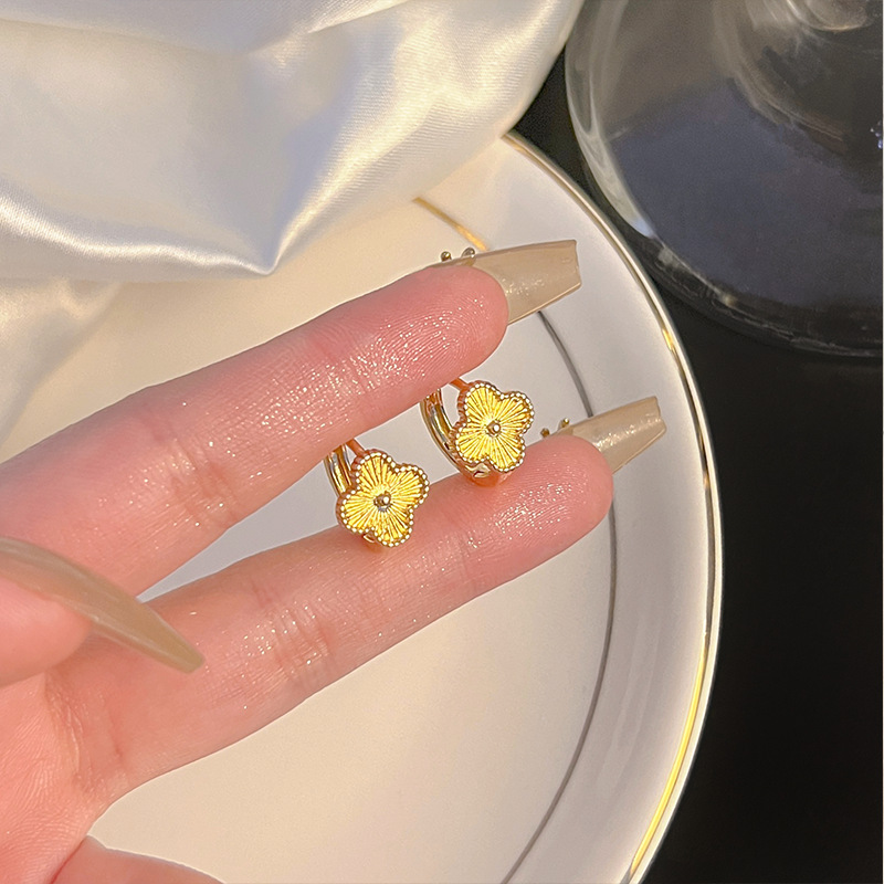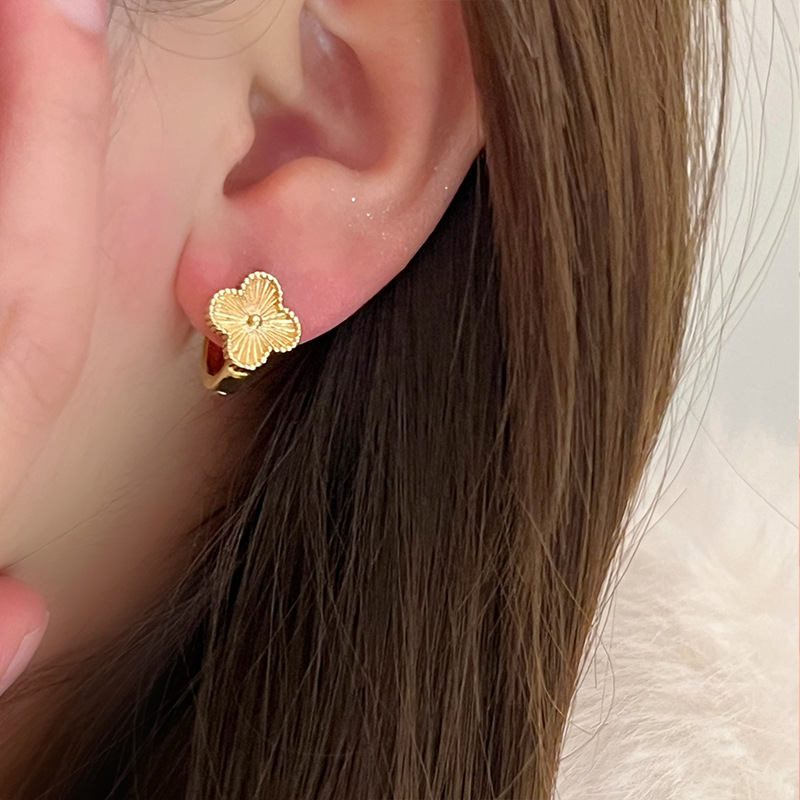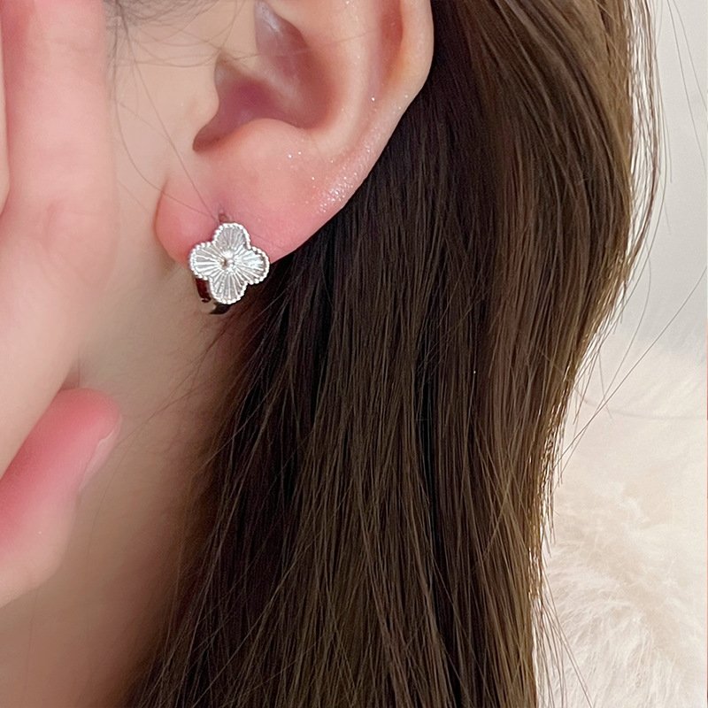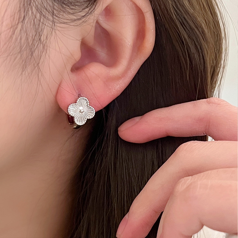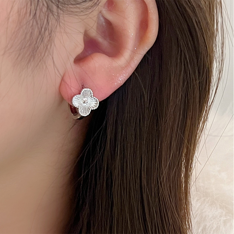 谁戴谁显贵!高级感镭射四叶草耳钉2024年新款爆款耳环轻奢耳饰女
