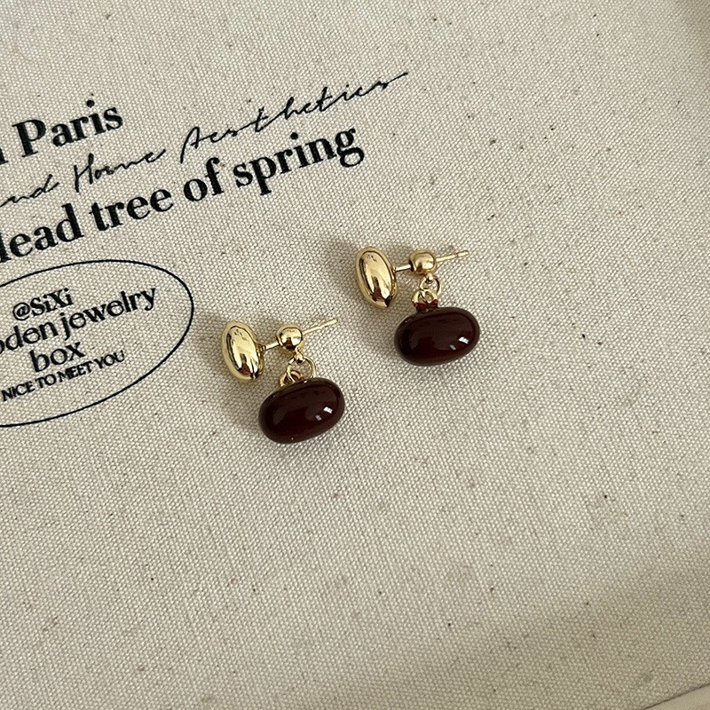 法式高级复古小众天然虎眼石圆球耳钉女欧美轻奢气质时髦耳饰耳饰