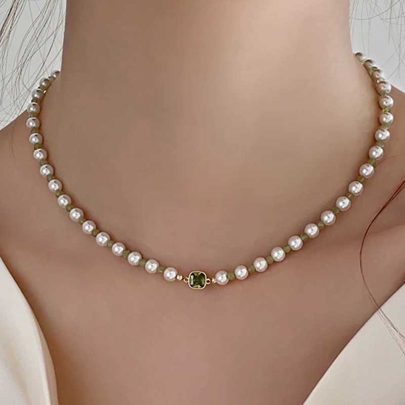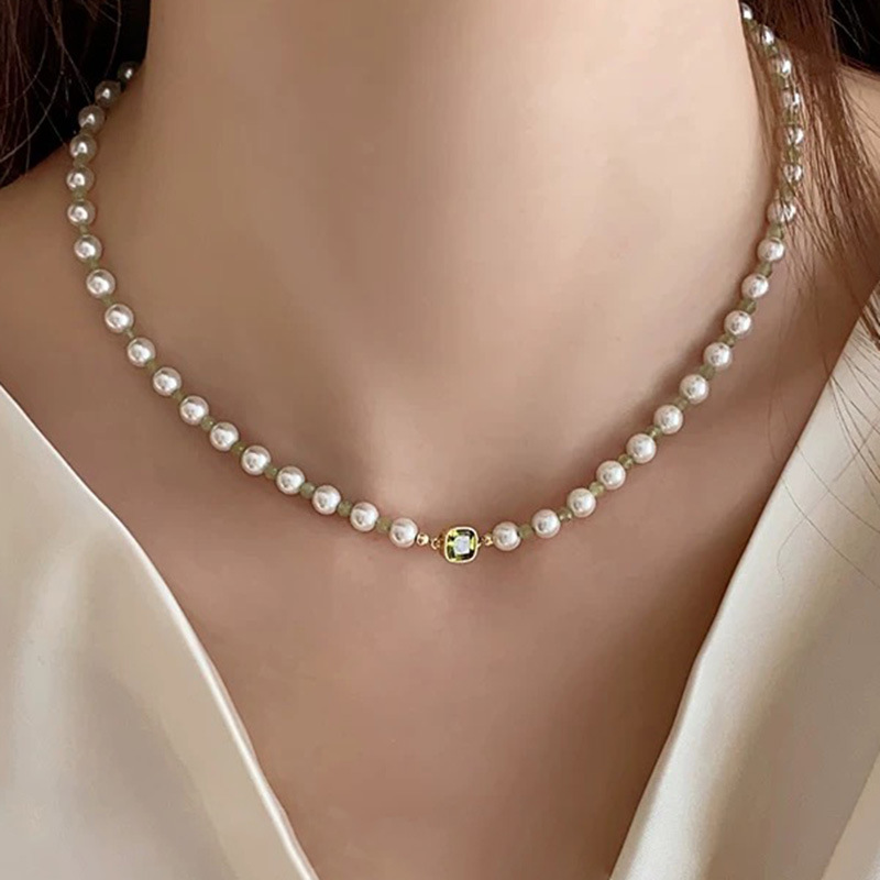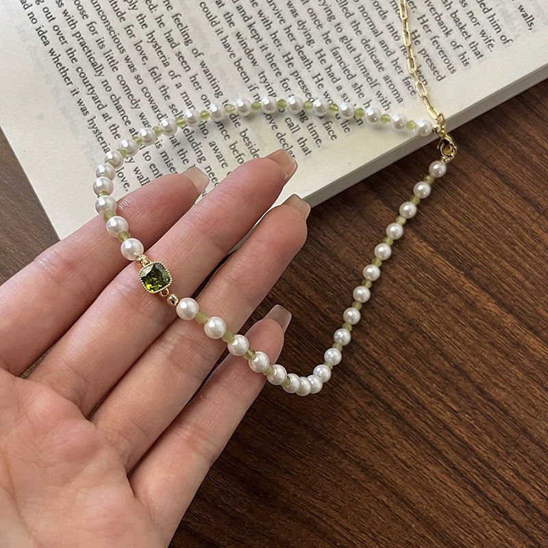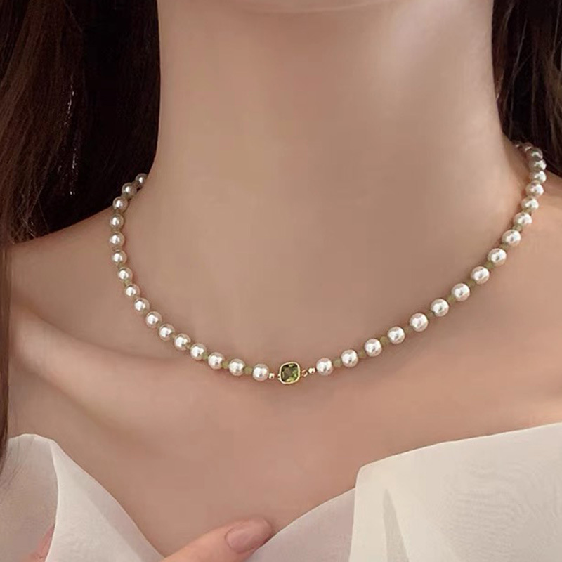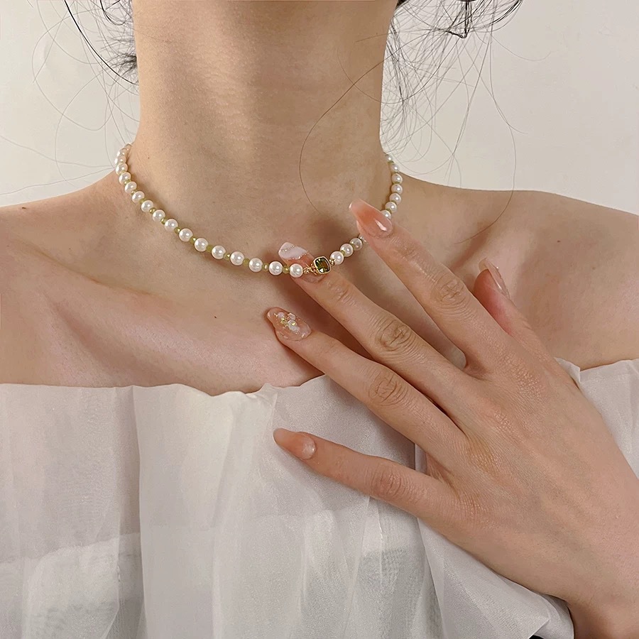绿色锆石珍珠项链高级感轻奢小众设计锁骨链精致甜美百搭新款颈链
