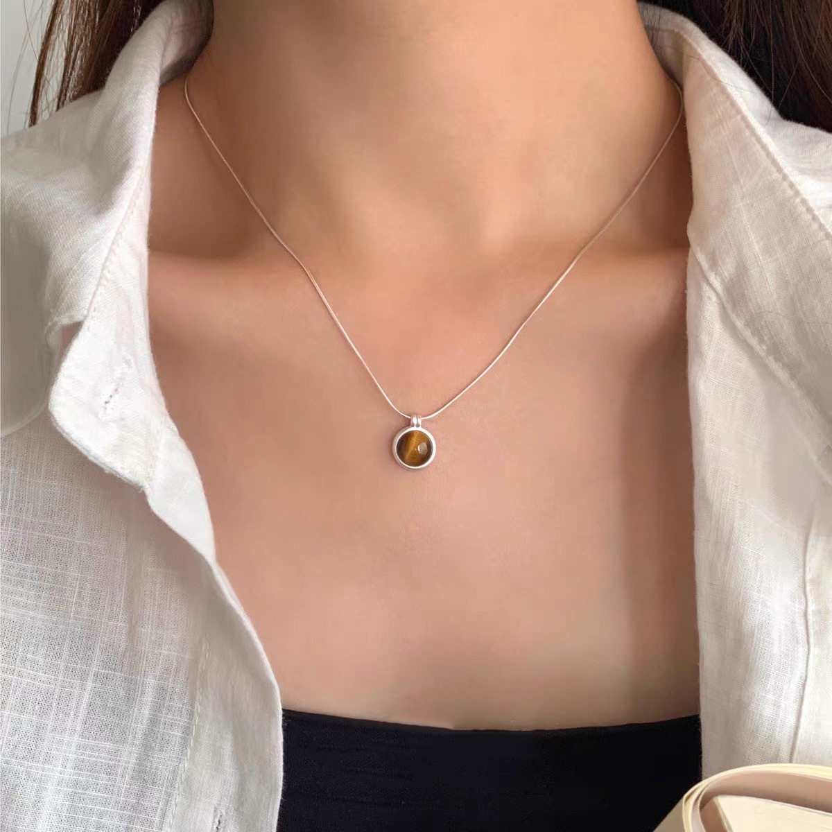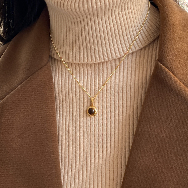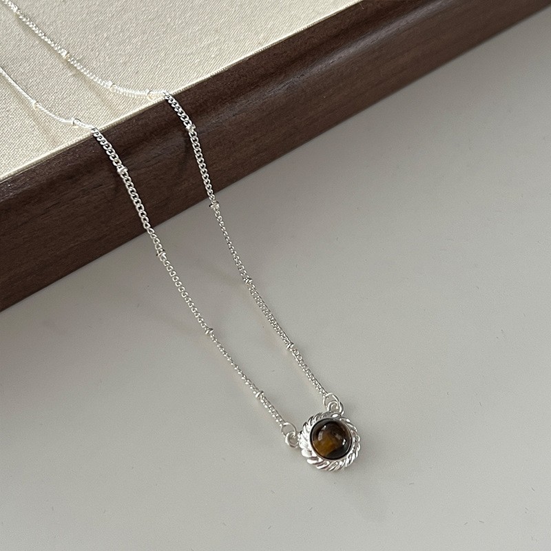 秋冬新款虎眼石项链米粒链条气质简约复古锁骨链女颈链法式简约
