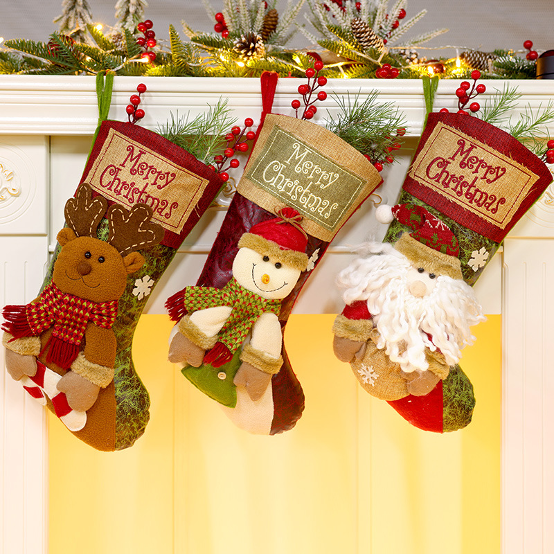 圣诞节装饰品高档圣诞袜子树挂件老人雪人麋鹿礼物礼品糖果袋批发