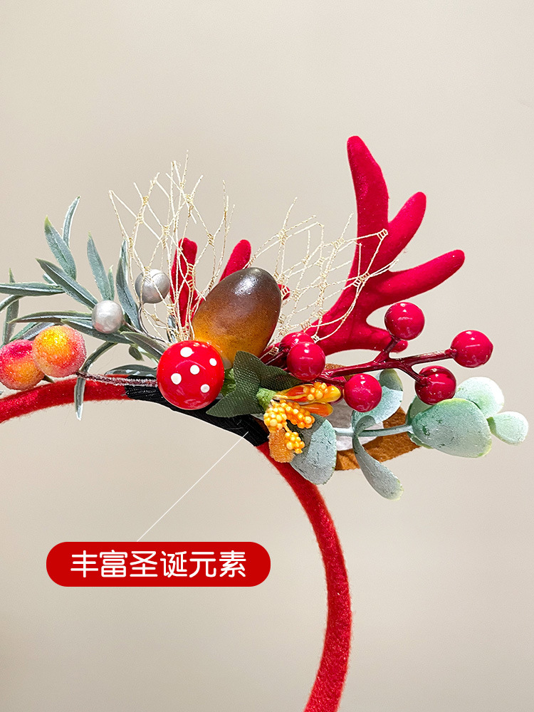 新款圣诞节发箍女高级感儿童头箍可爱森系麋鹿角头饰发卡成人发饰