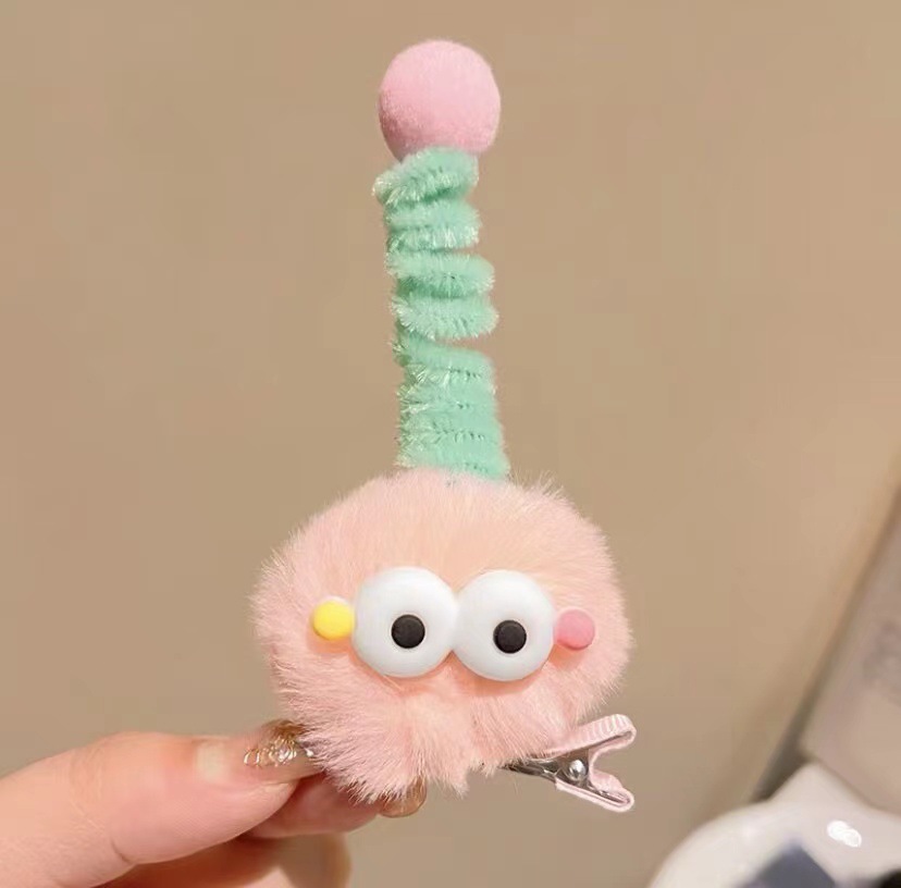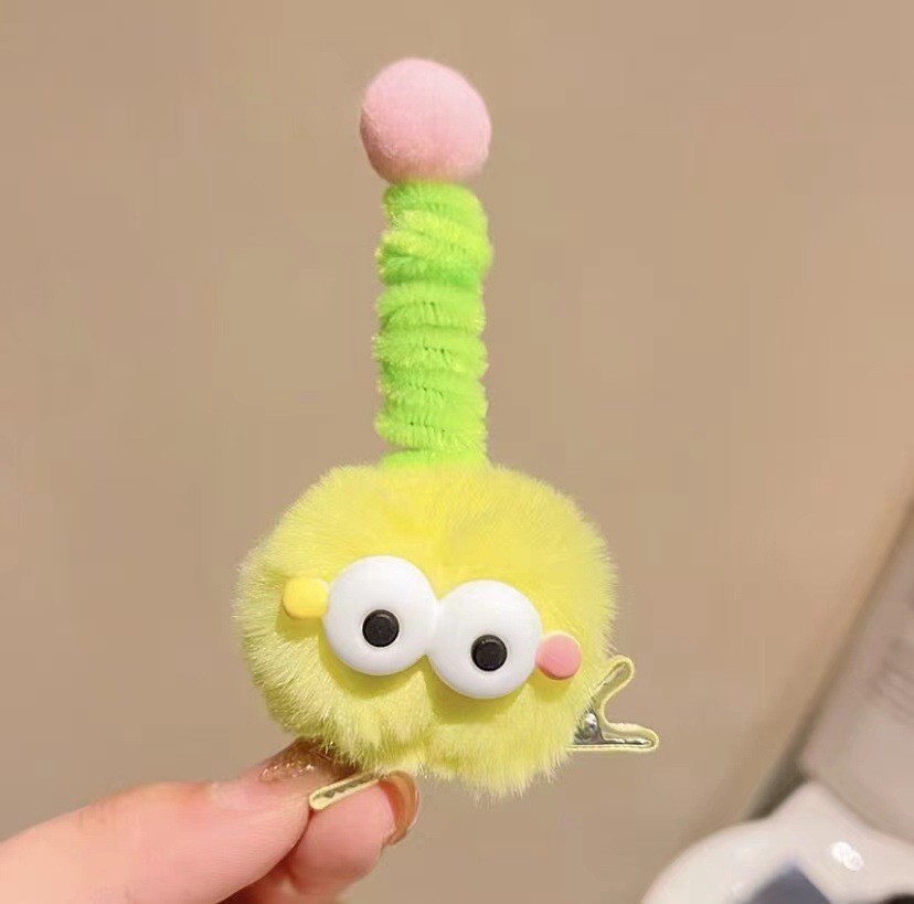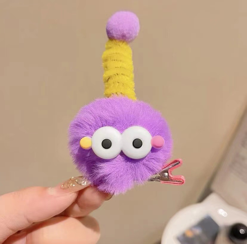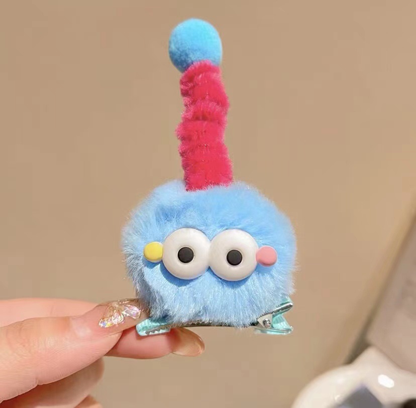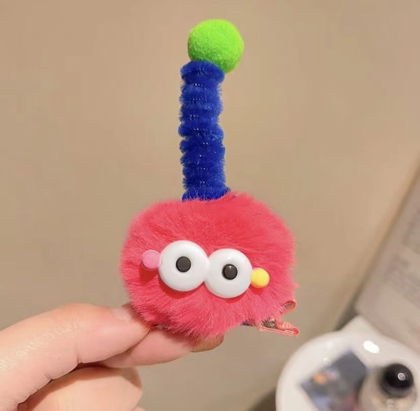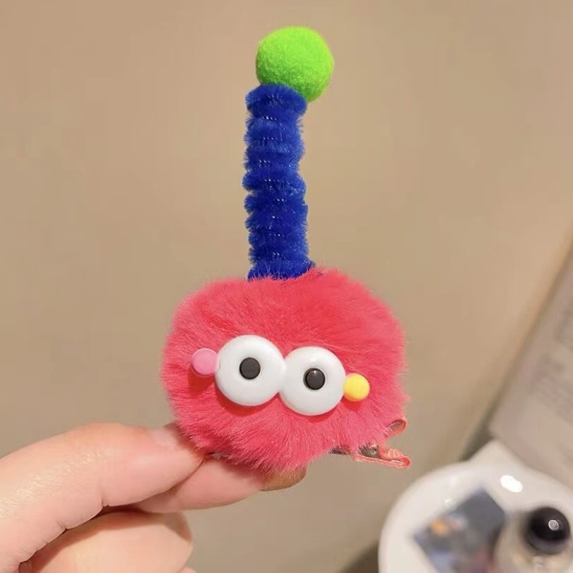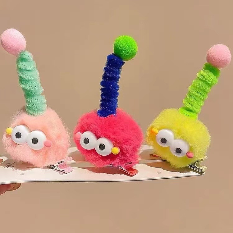 可爱煤球扭扭棒发夹天线丑娃娃鸭嘴夹丑萌大眼毛球搞怪发夹发饰女