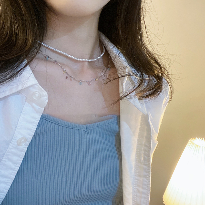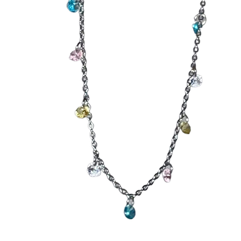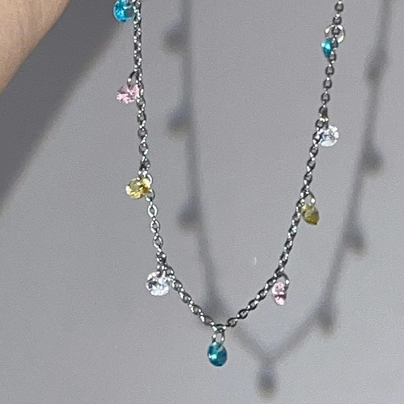韩国小众轻奢精致五彩水钻项链细金属颈链女锁骨链高级感新款