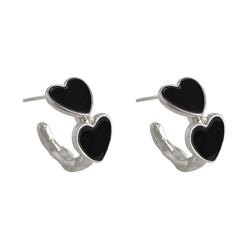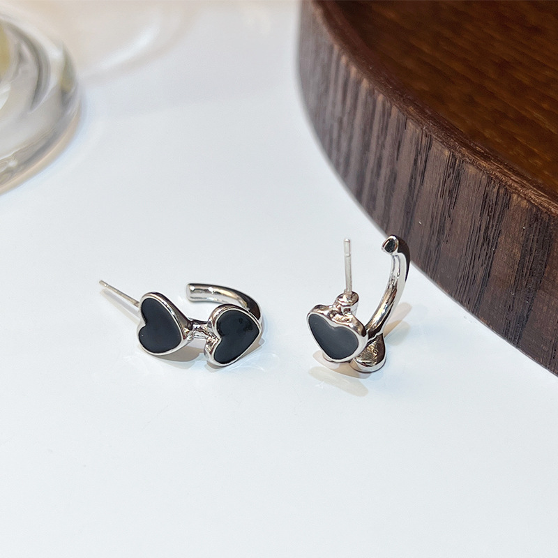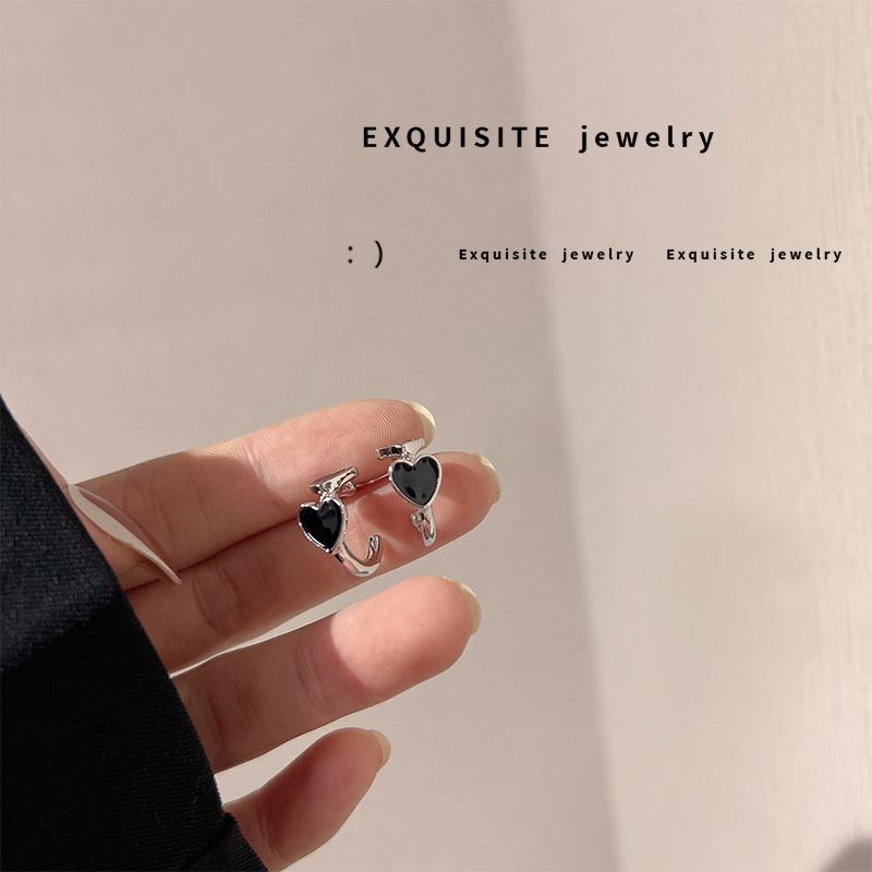 黑桃甜心耳环 925银针暗黑甜酷黑色爱心耳钉女复古时尚大气耳饰
