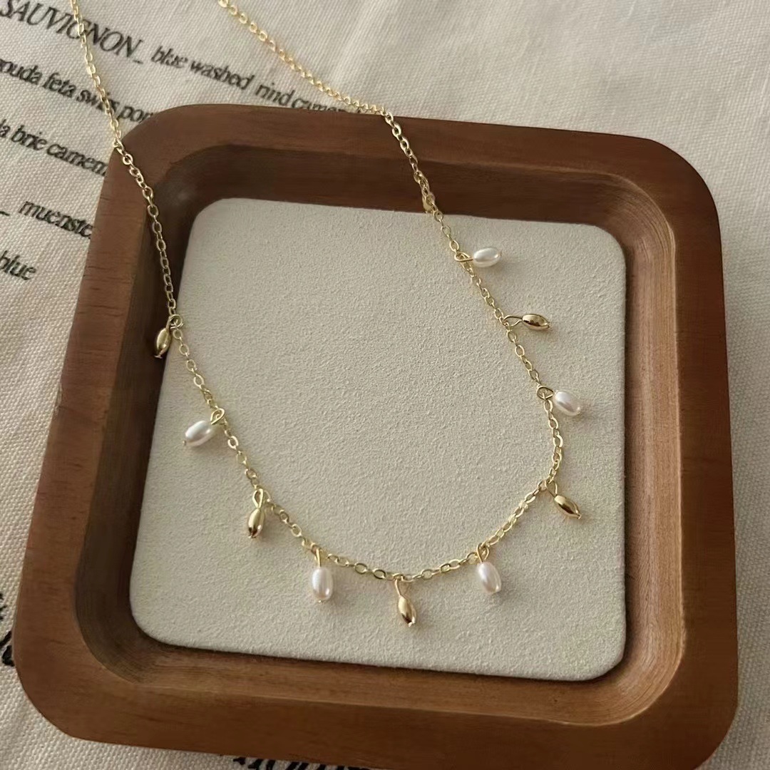 小众感气质高级感轻奢项饰水滴锁骨链女文艺复古时尚简约珍珠项链