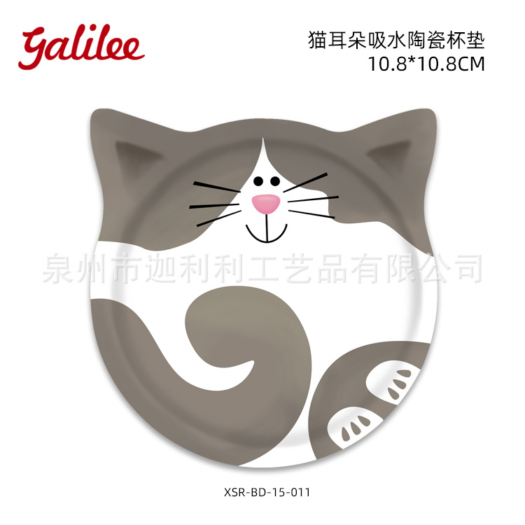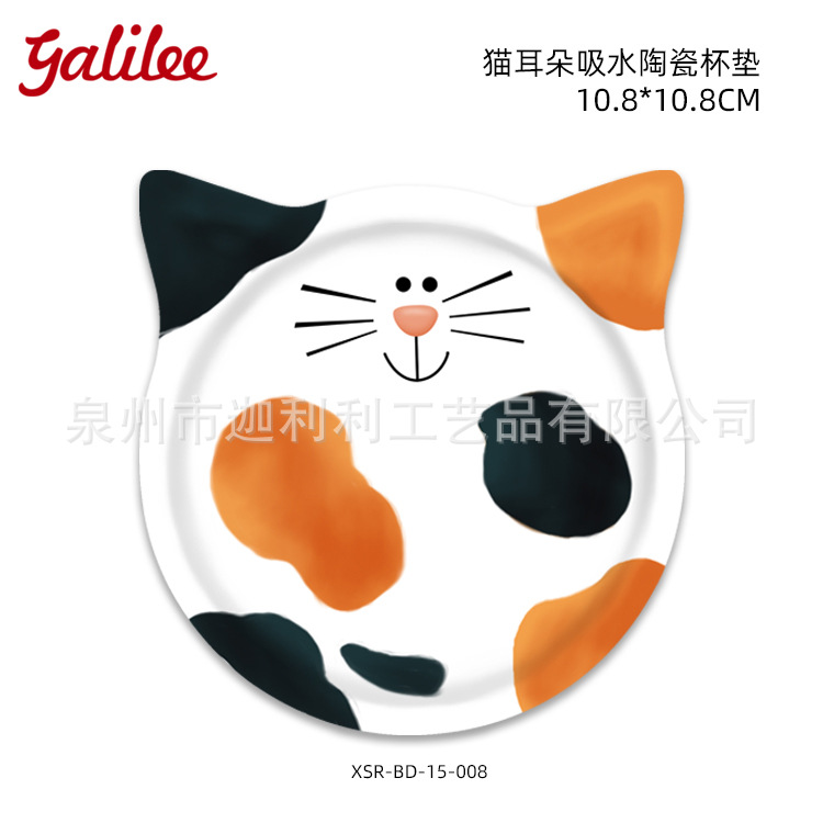 创意猫咪吸水陶瓷杯垫跨境电商ins外贸卡通陶瓷餐碗垫隔热垫礼品