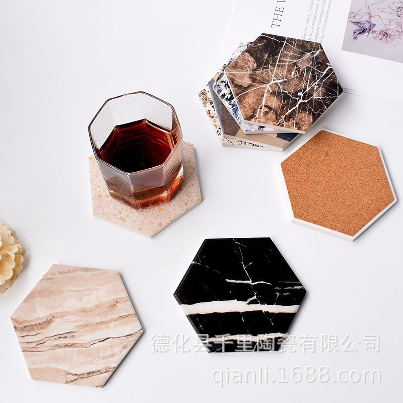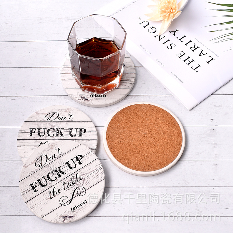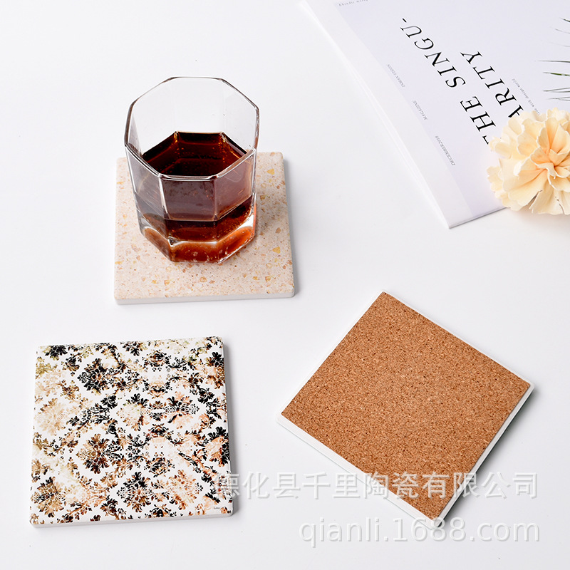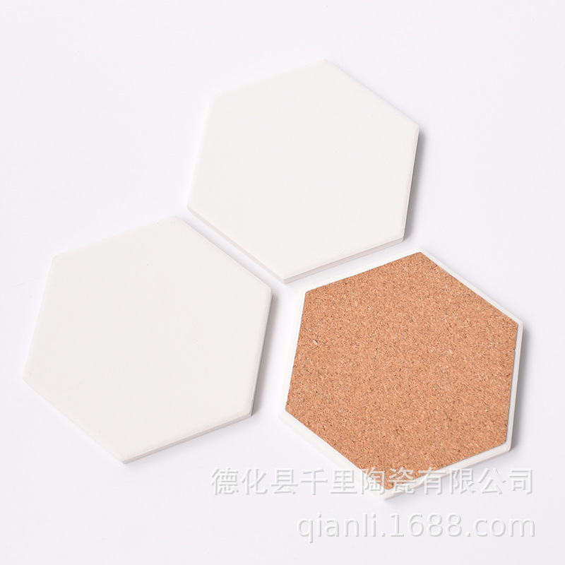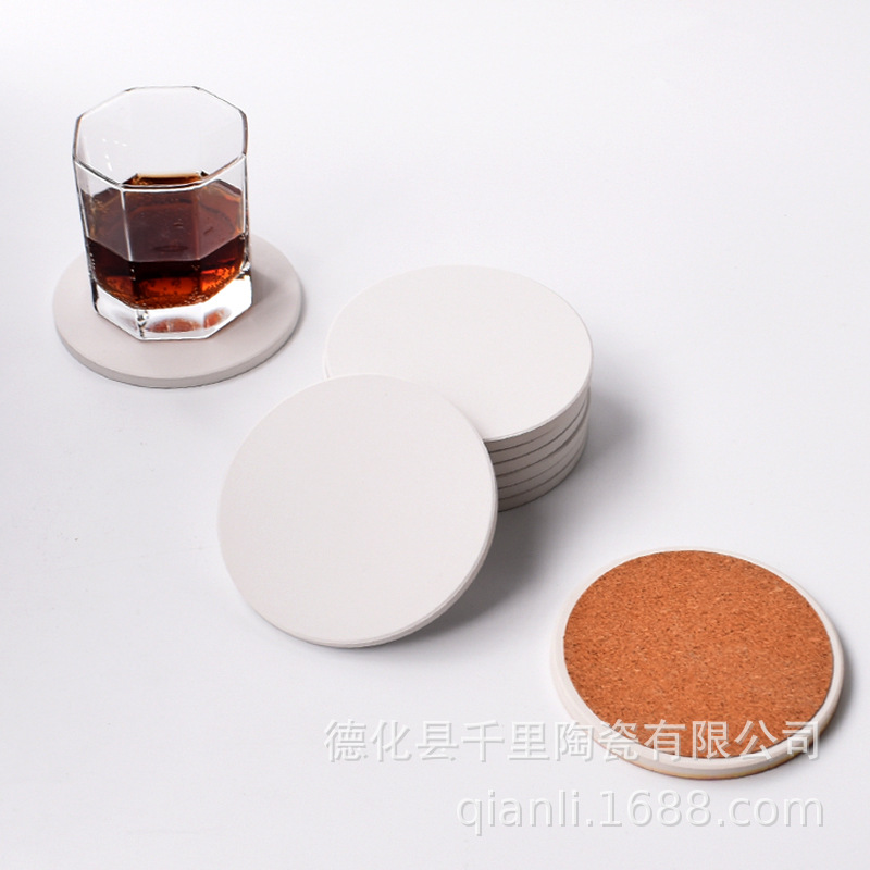 厂家批发陶瓷杯垫DIY白坯文创浮雕烫金吸水软木汽车杯垫隔热锅垫