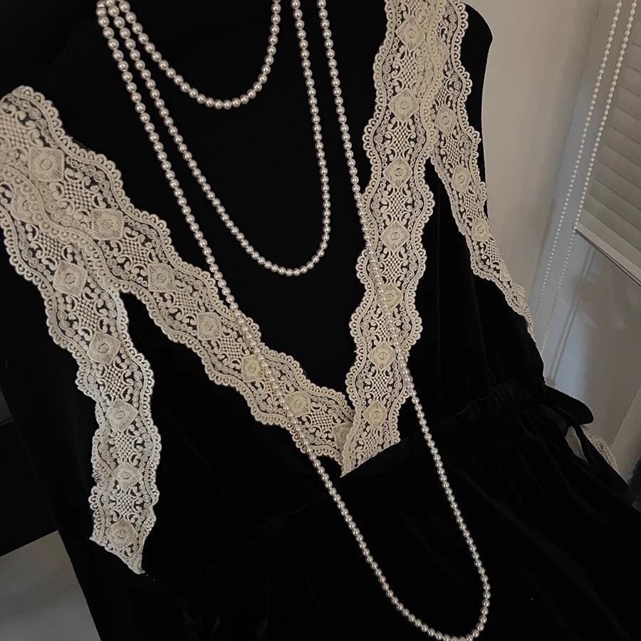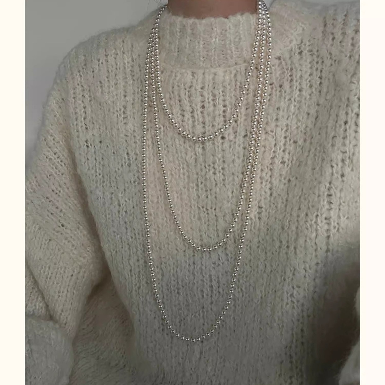 长款正圆高亮珍珠项链轻奢高级感毛衣链女叠戴法式锁骨链气质配饰