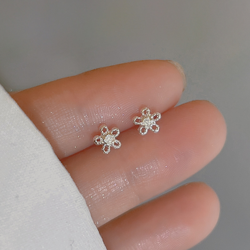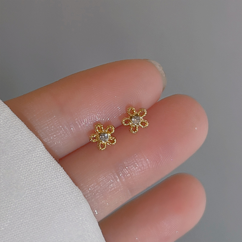简约小巧花朵耳钉小众百搭小清新甜美镂空设计小花耳环精致高级感