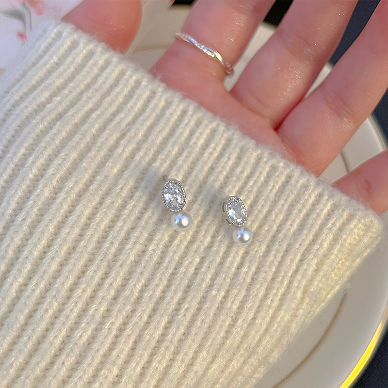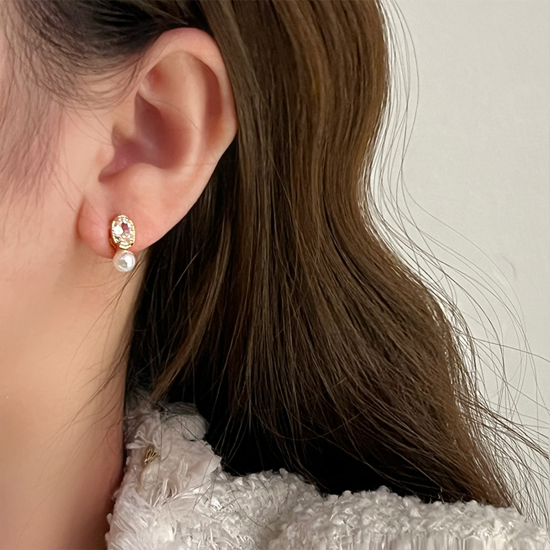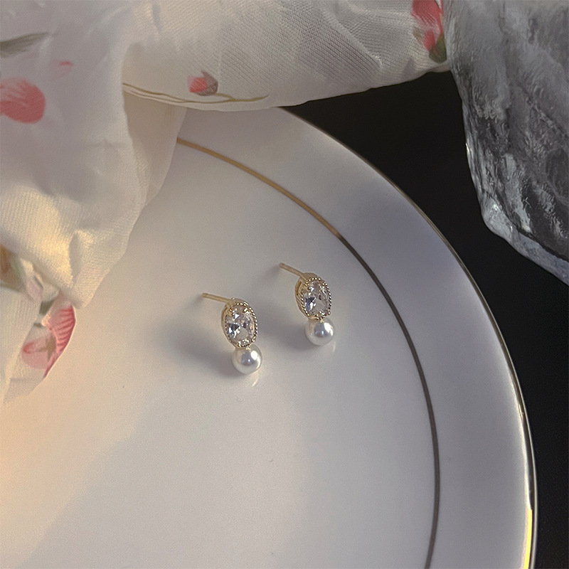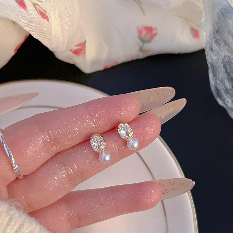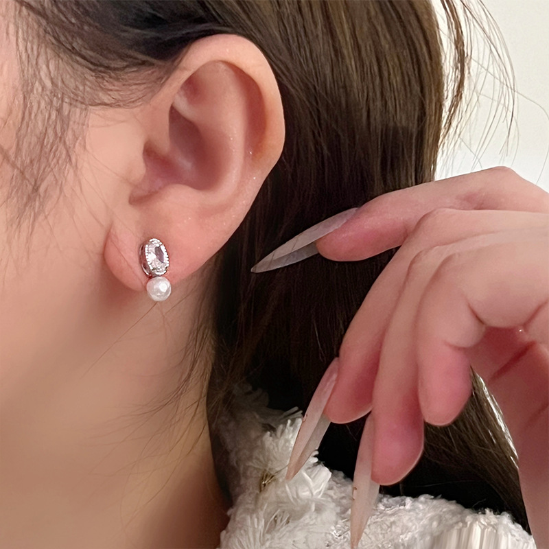 法式复古锆石珍珠耳钉精致百搭养耳洞耳环简约小众设计个性耳饰品