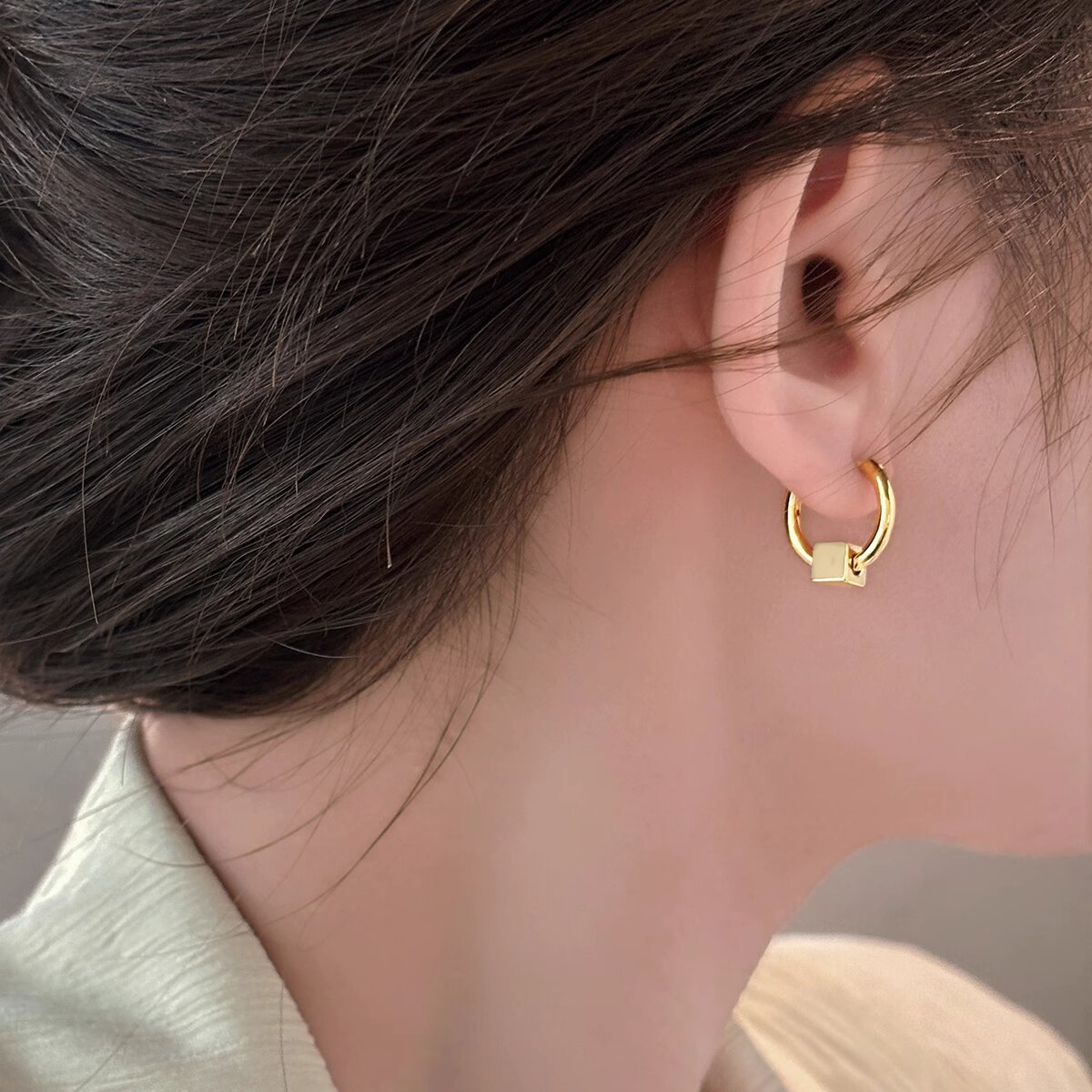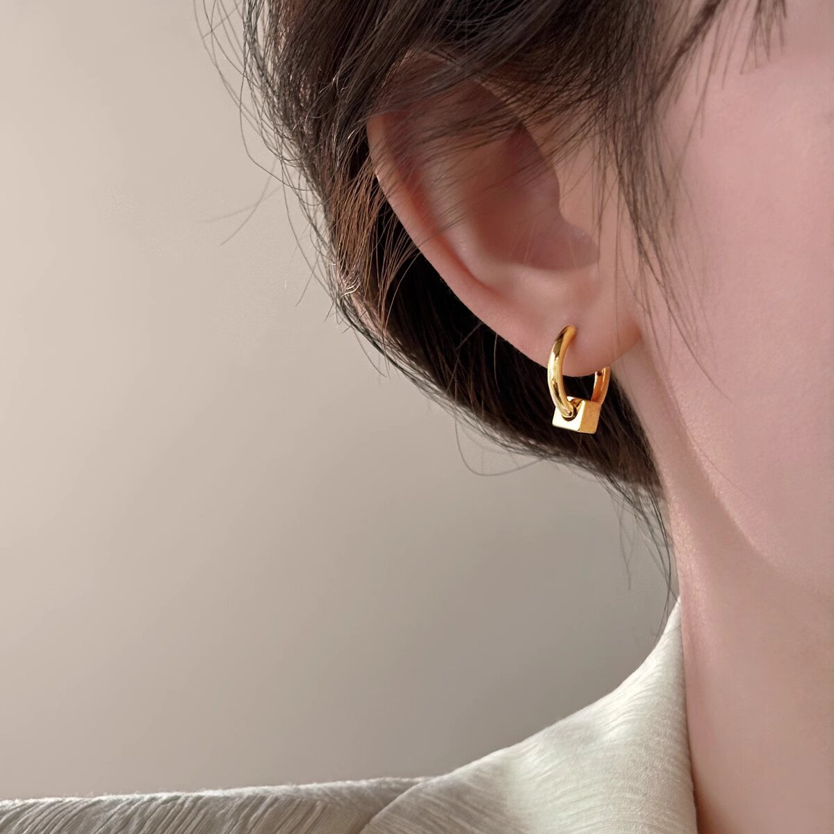 冷淡风复古金属球圆环耳扣耳圈时尚小众设计简约轻奢耳环男女同款