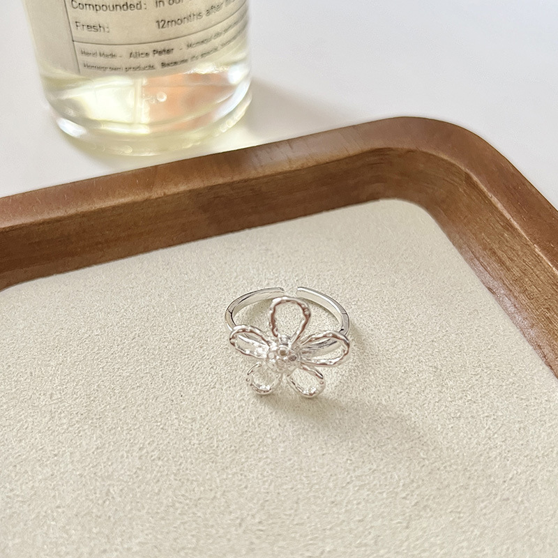 镂空爱心戒指女2023年新款时尚个性小众设计心形指环戒开口可调节
