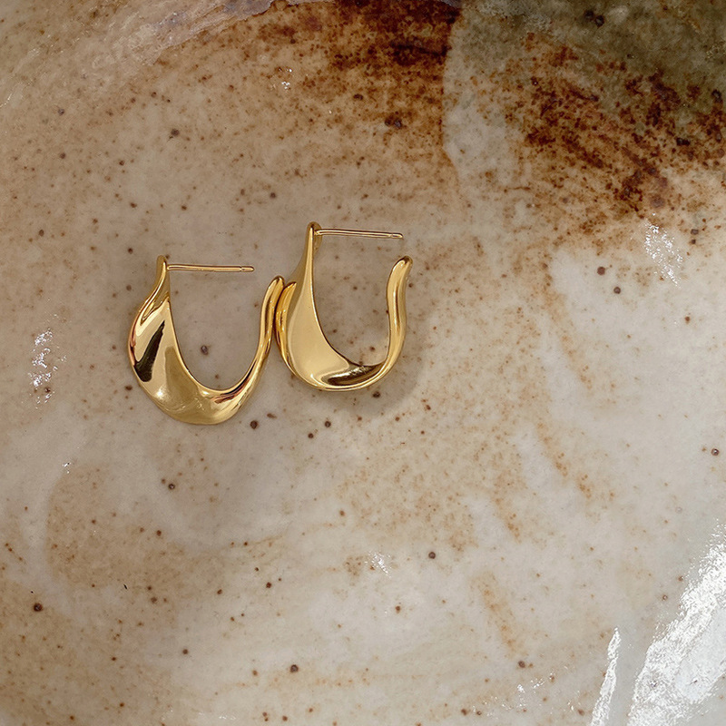 法式S925银针几何耳钉女2021新款简约个性U耳环ins风耳饰女