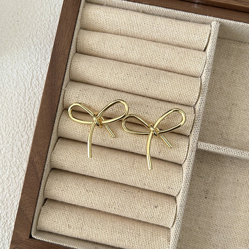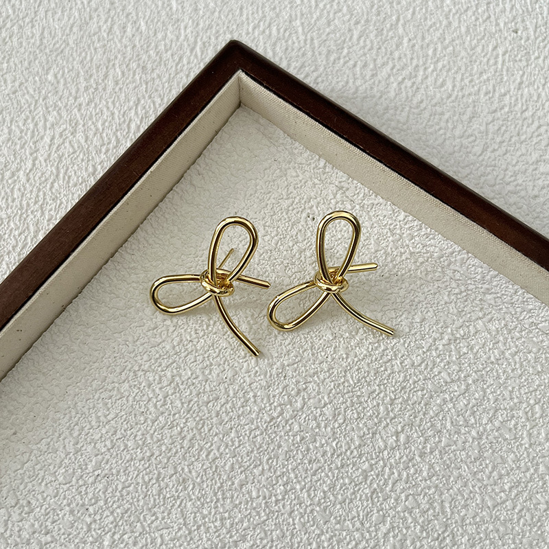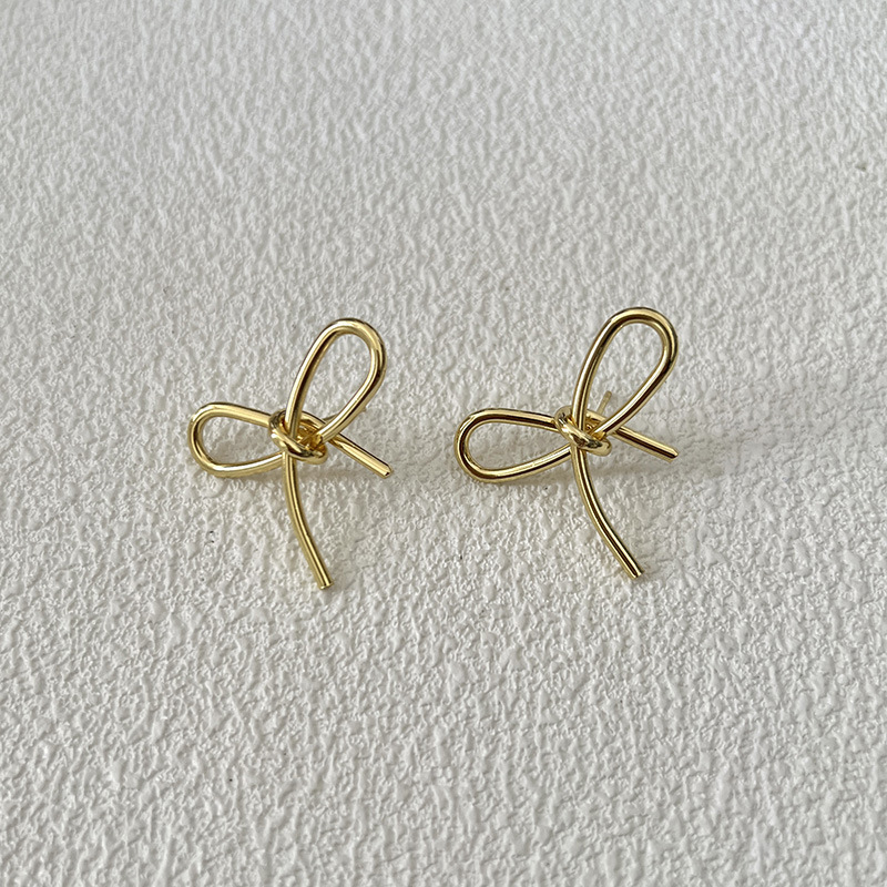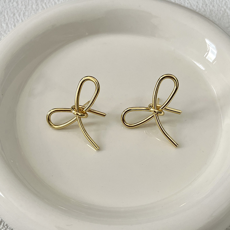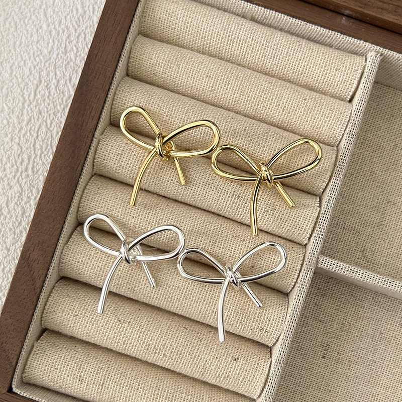 简约甜美蝴蝶结式耳钉乖巧可爱百搭精致轻奢丝带感独特银色耳饰品